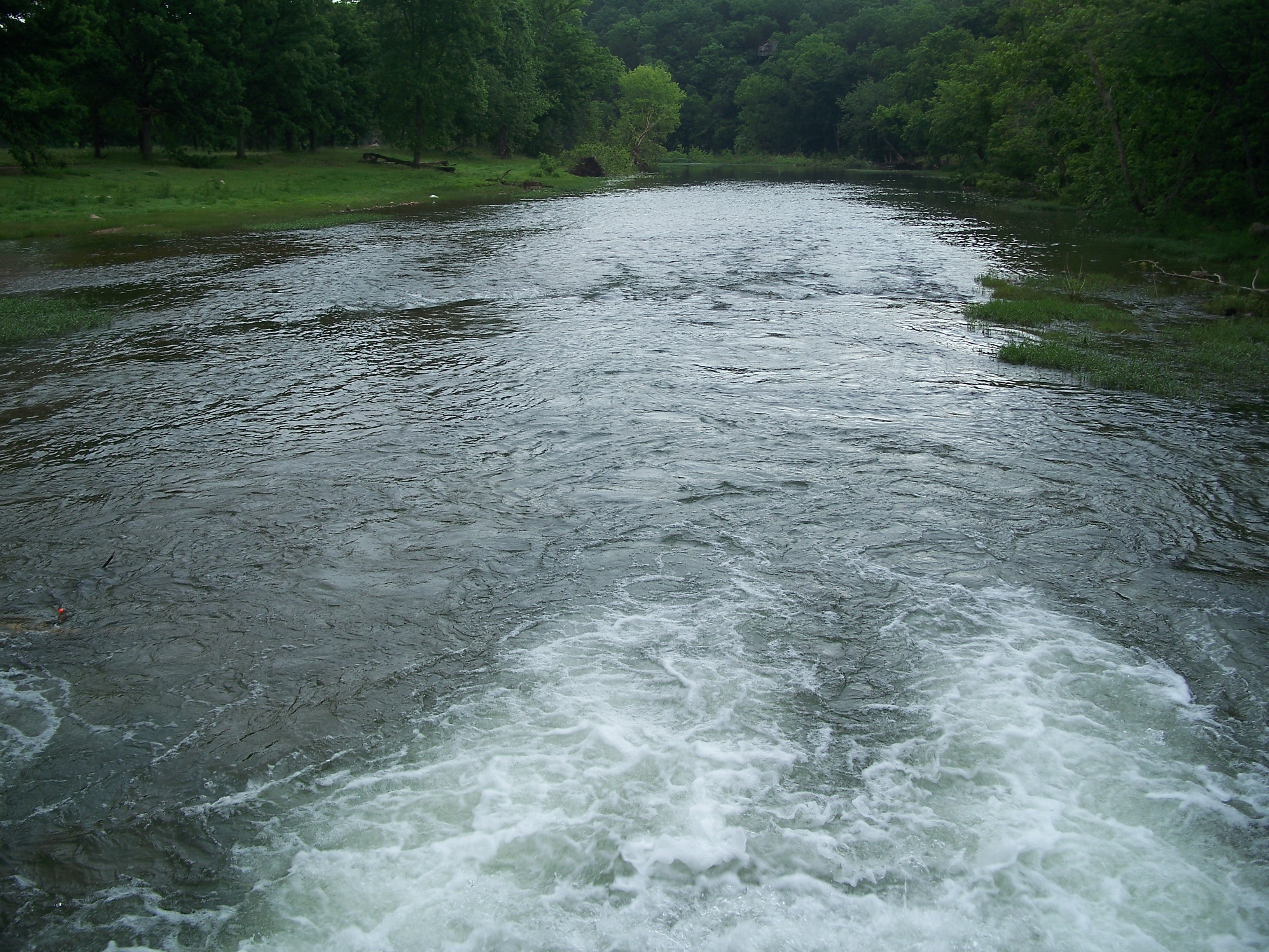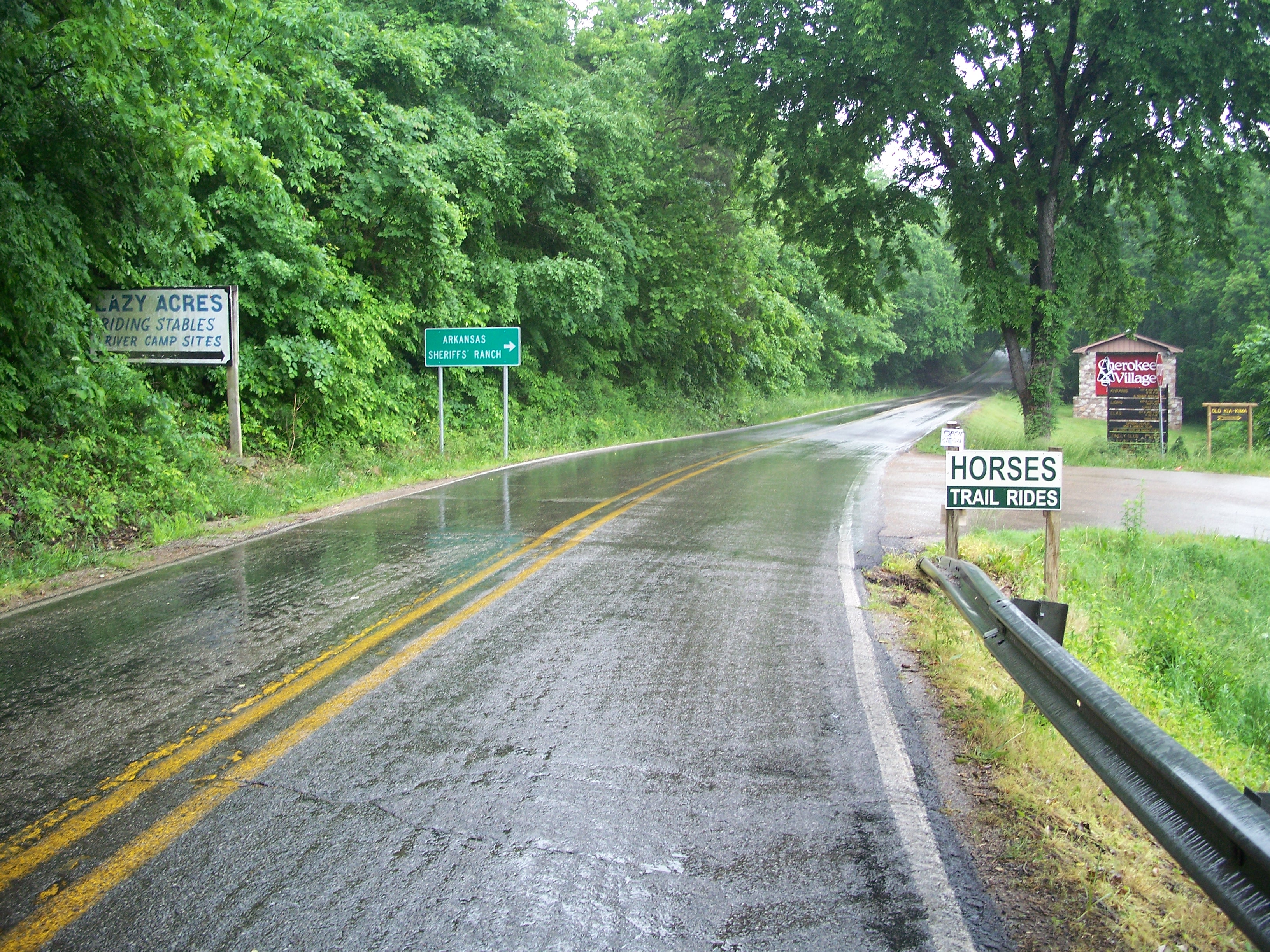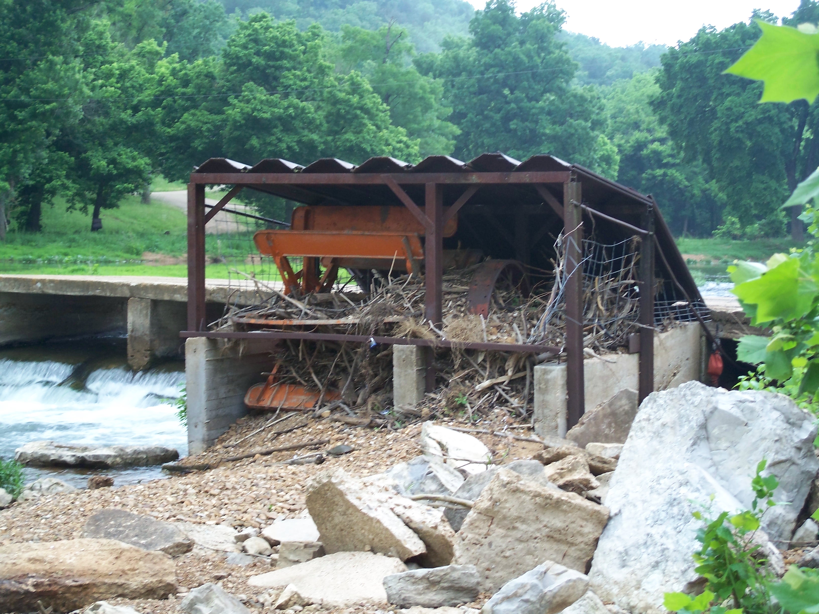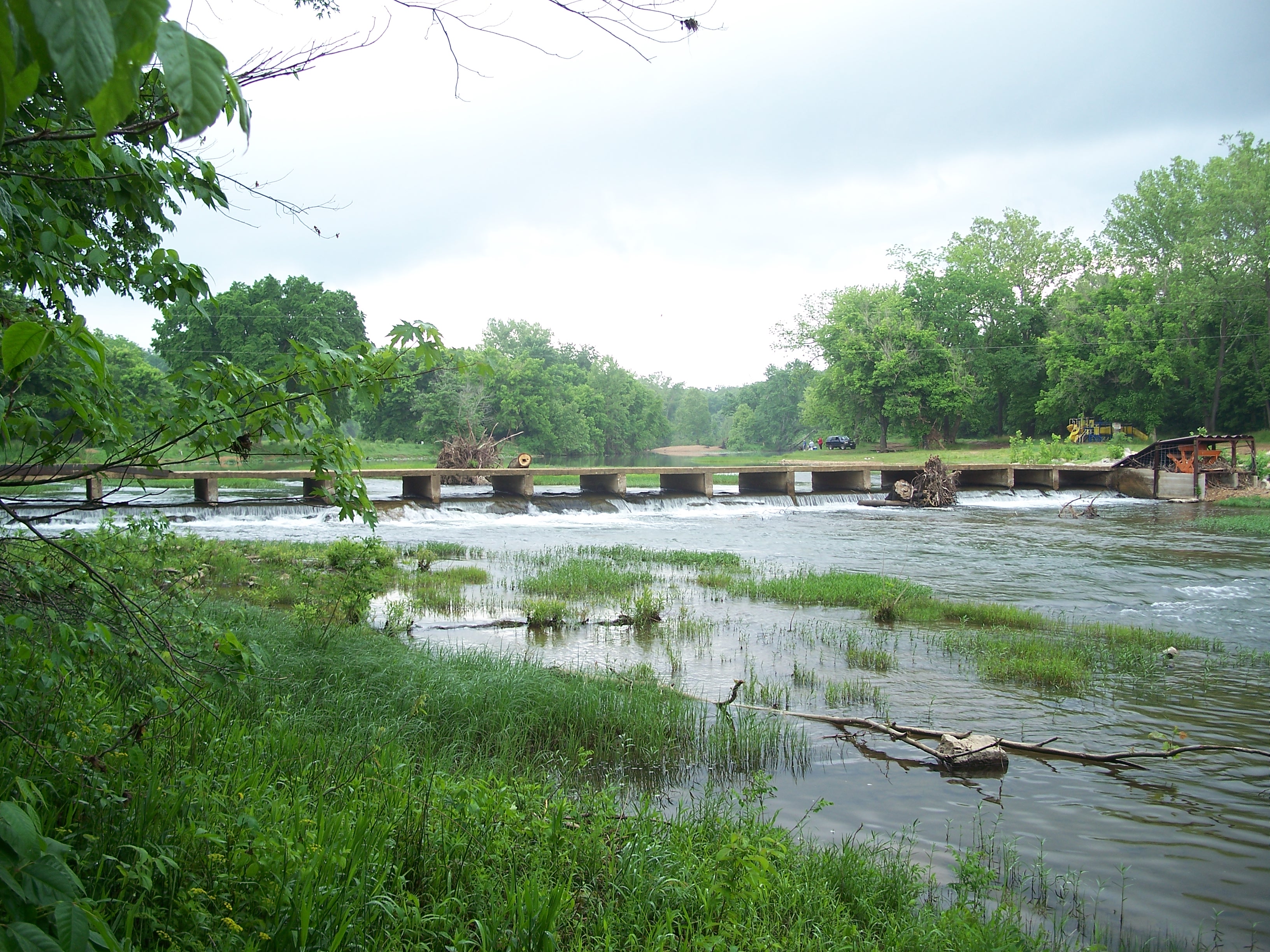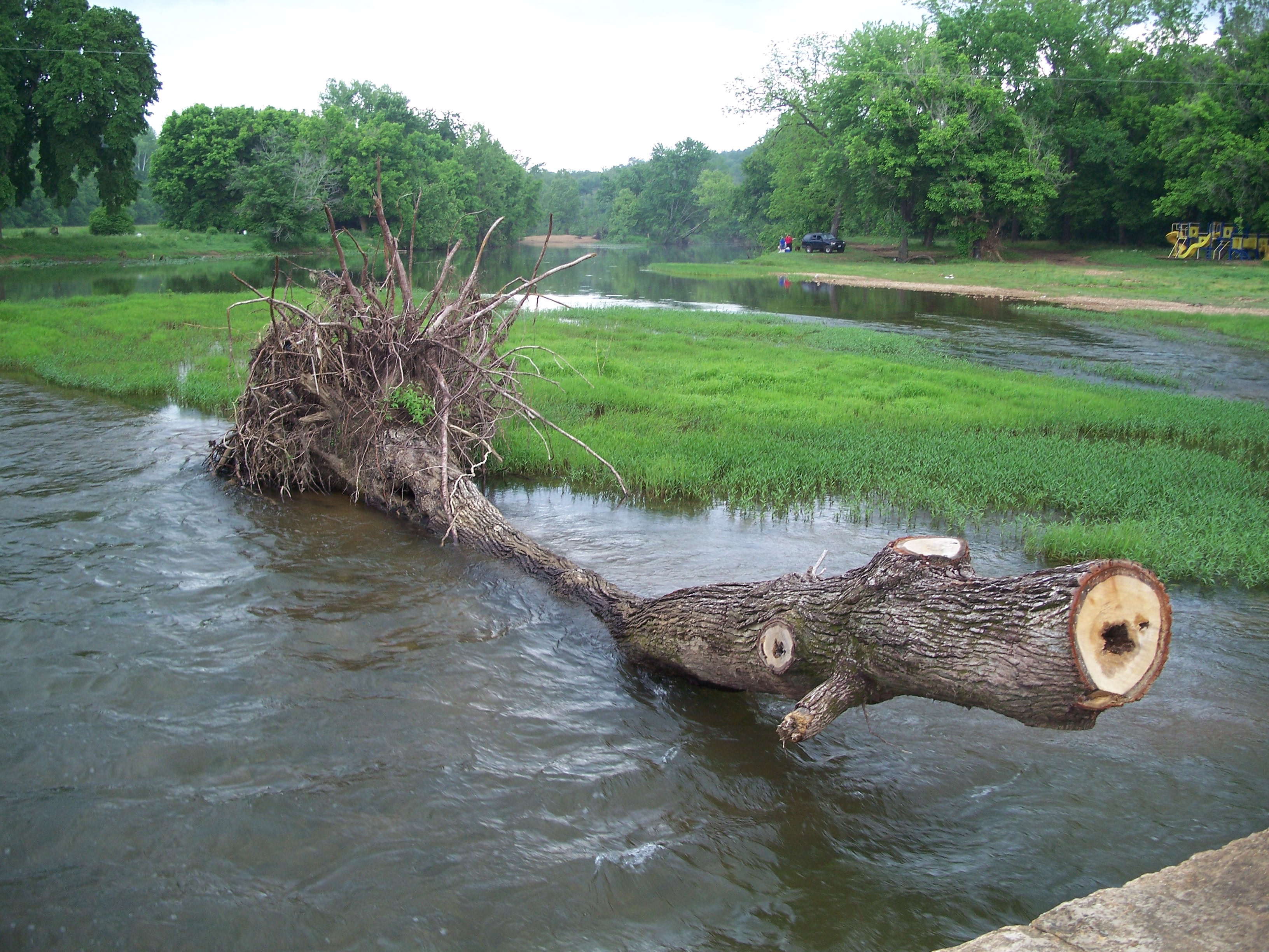 The South Fork of the Spring River starts in Howell County, MO flowing south through Fulton and Sharp counties in Arkansas and joining the Spring River proper just to the east of this bridge. The area had received a significant amount of rain and flooding in the months before I visited in May of 2008, accounting for the tree stumps to the east and west of the bridge.