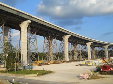 I returned to the bridge in the middle of the reconstruction project during August of 2011. Much to my delight, the old roadways hadn't been widened yet to fit the new superstructure, so I had one last chance to make that terrifying drive across even more terrifying by filming it.
