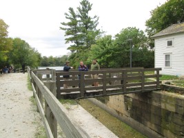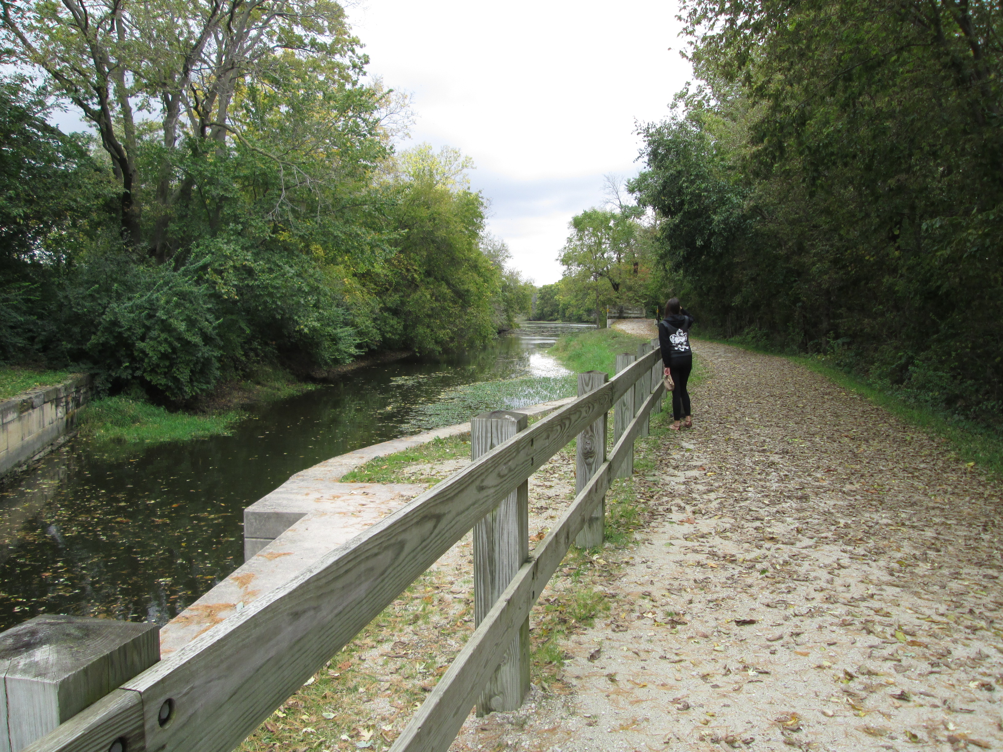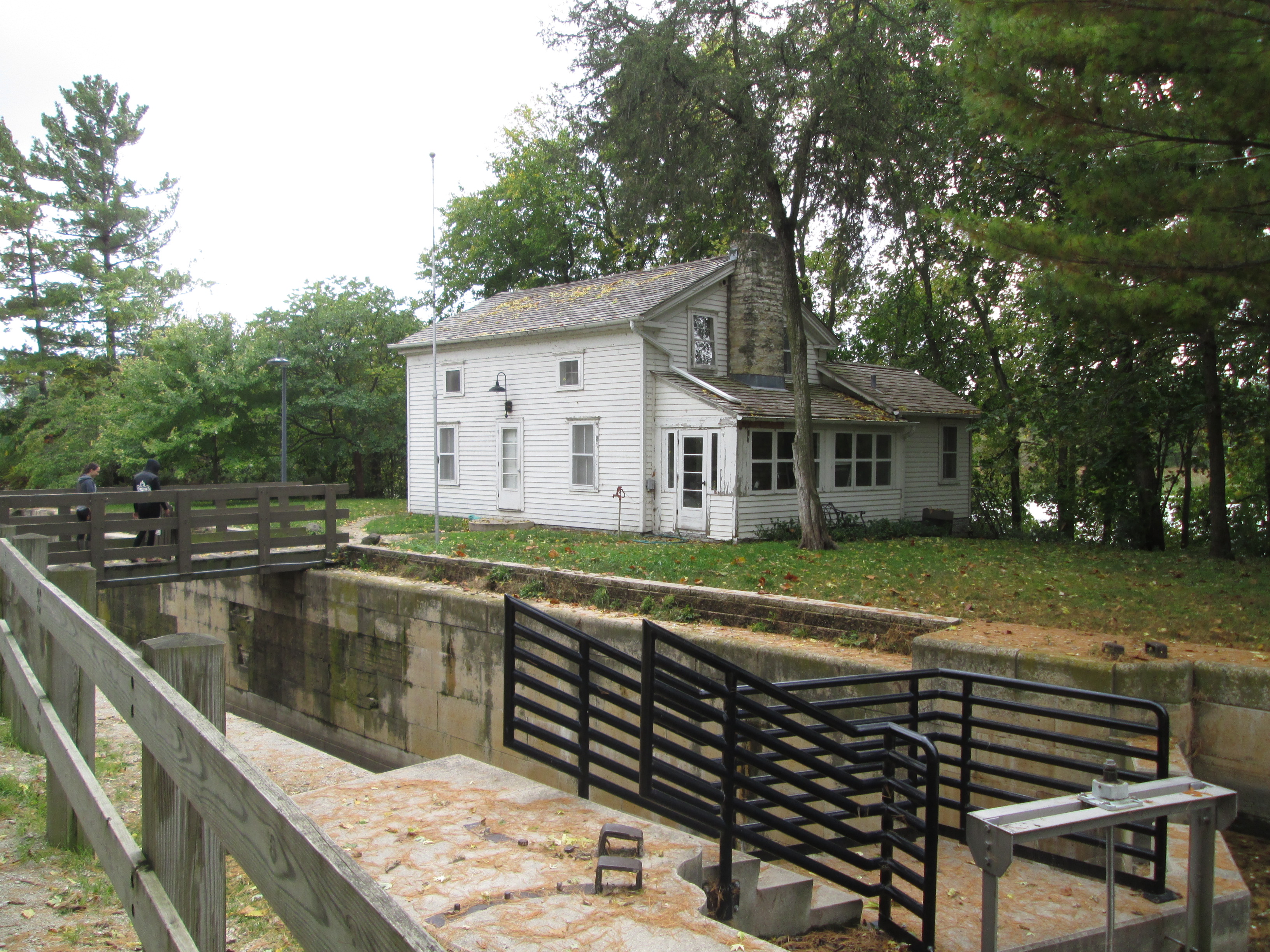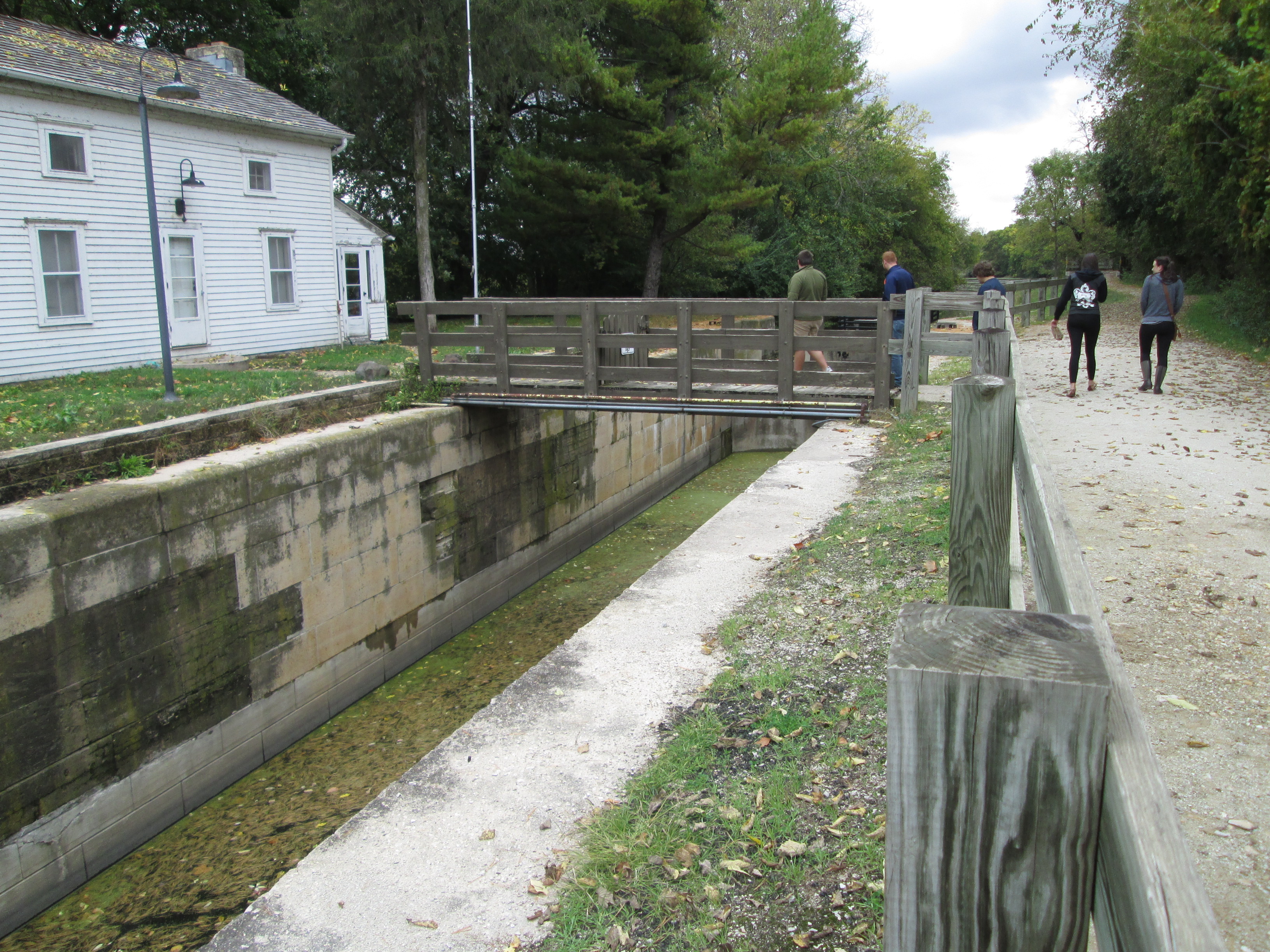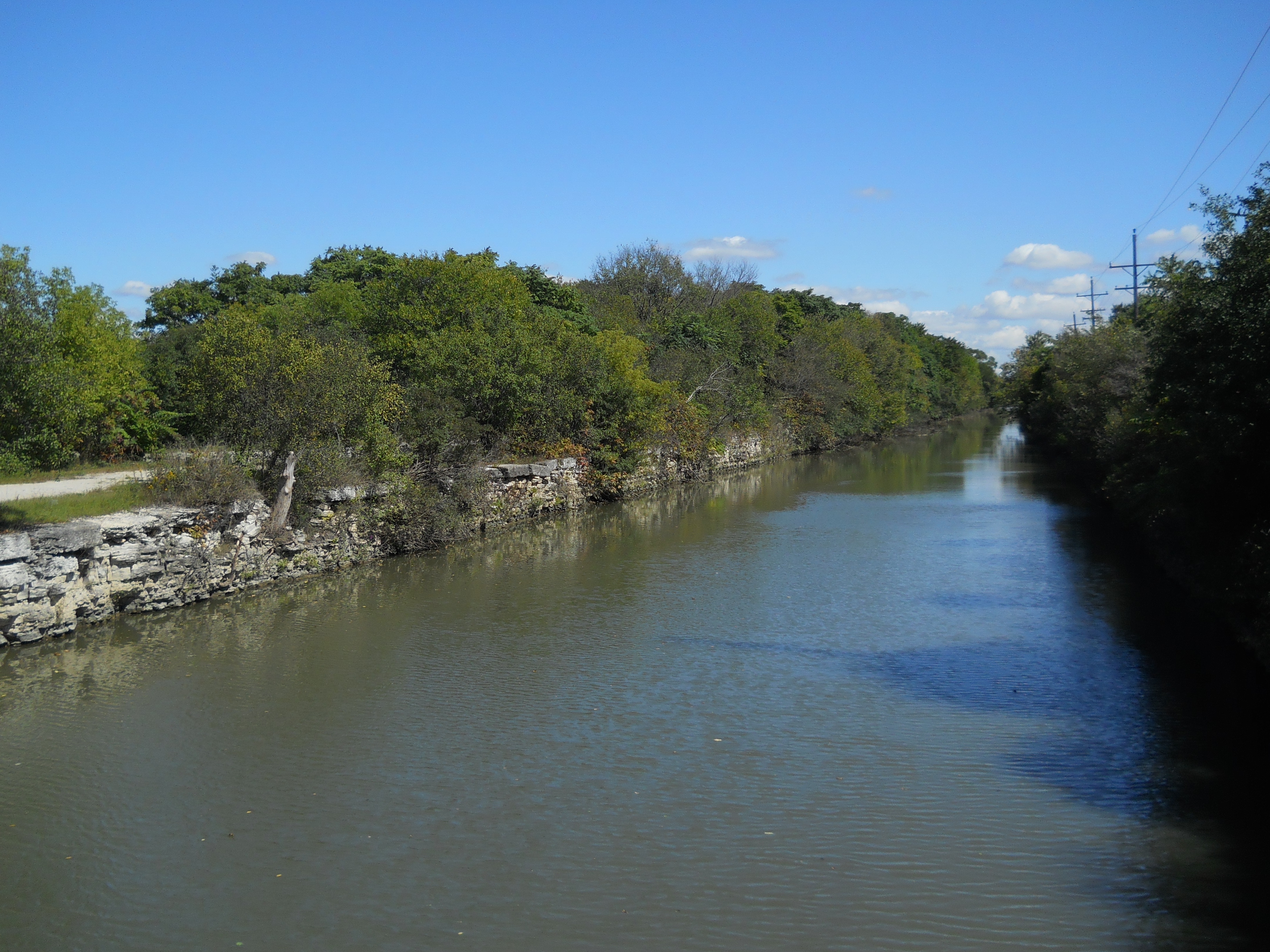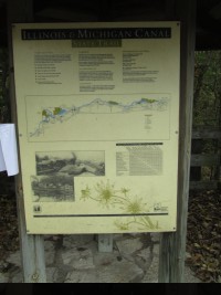 The Illinois and Michigan Canal was constructed from 1836 to 1848 and included 17 locks and four aqueducts along its 96-mile route connecting the Chicago and Illinois rivers. It was largely replaced by the Chicago Sanitary and Ship Canal, and was decommissioned in 1933.