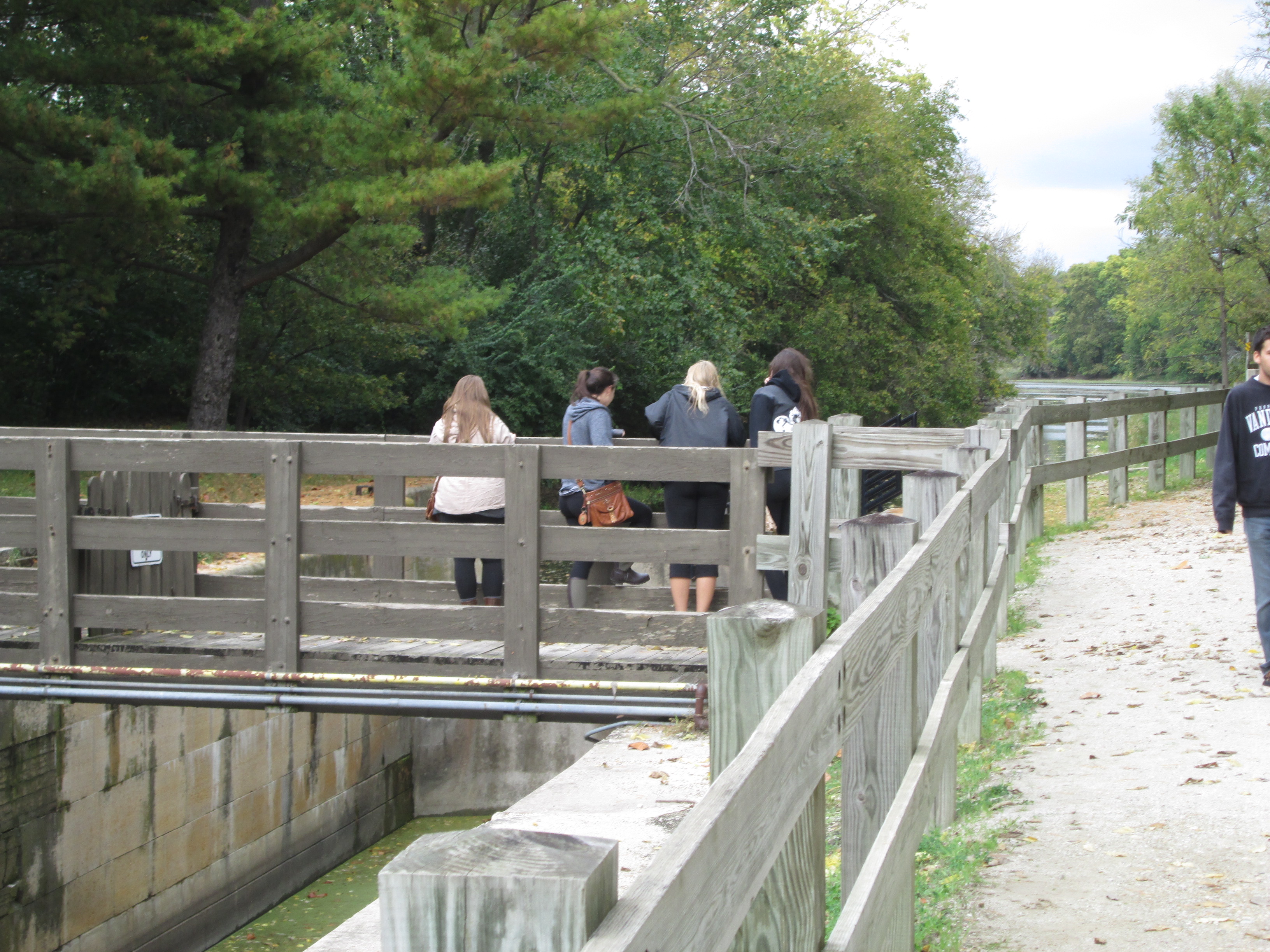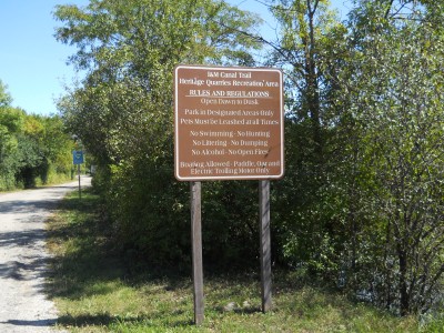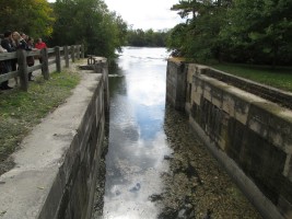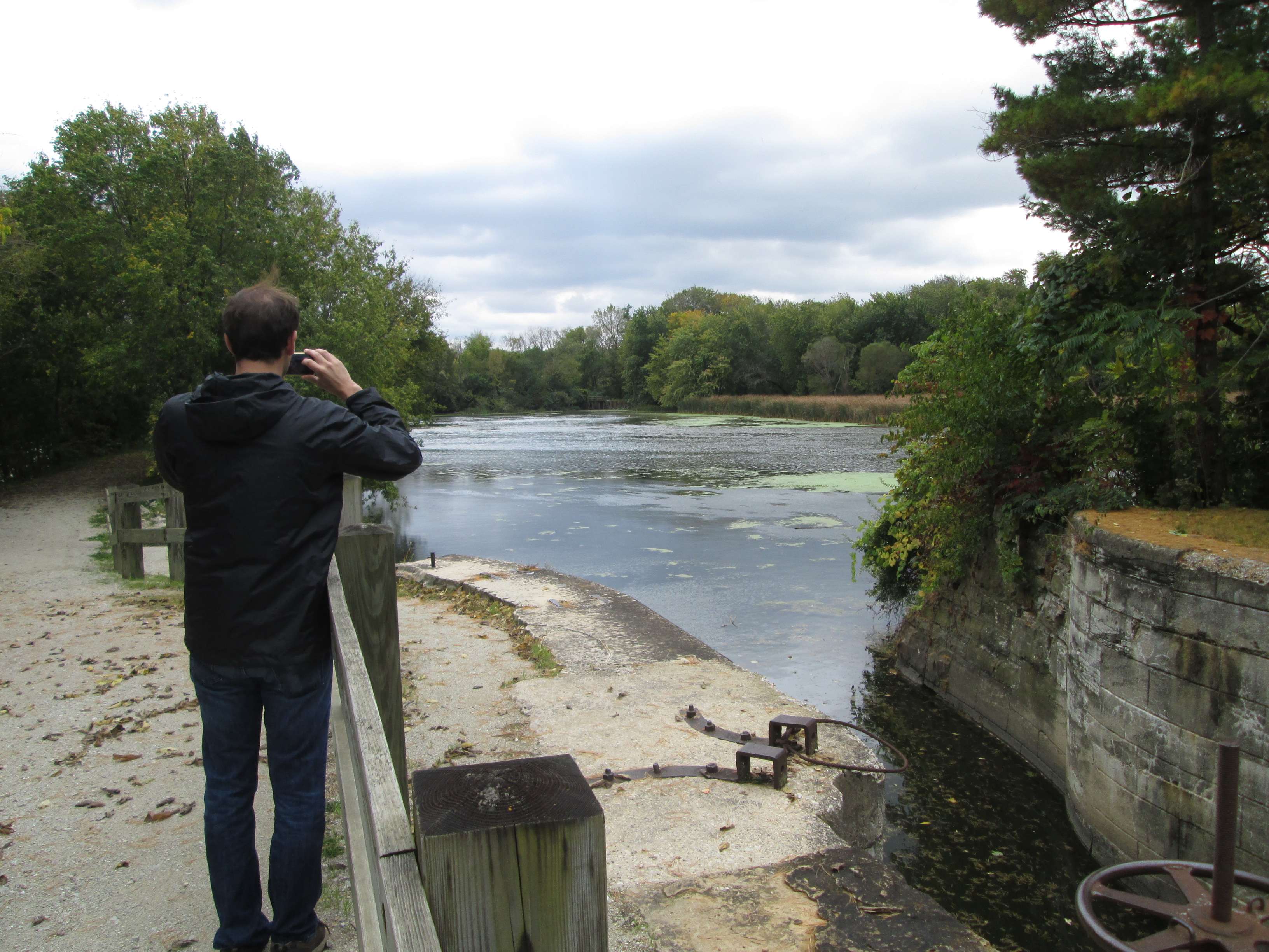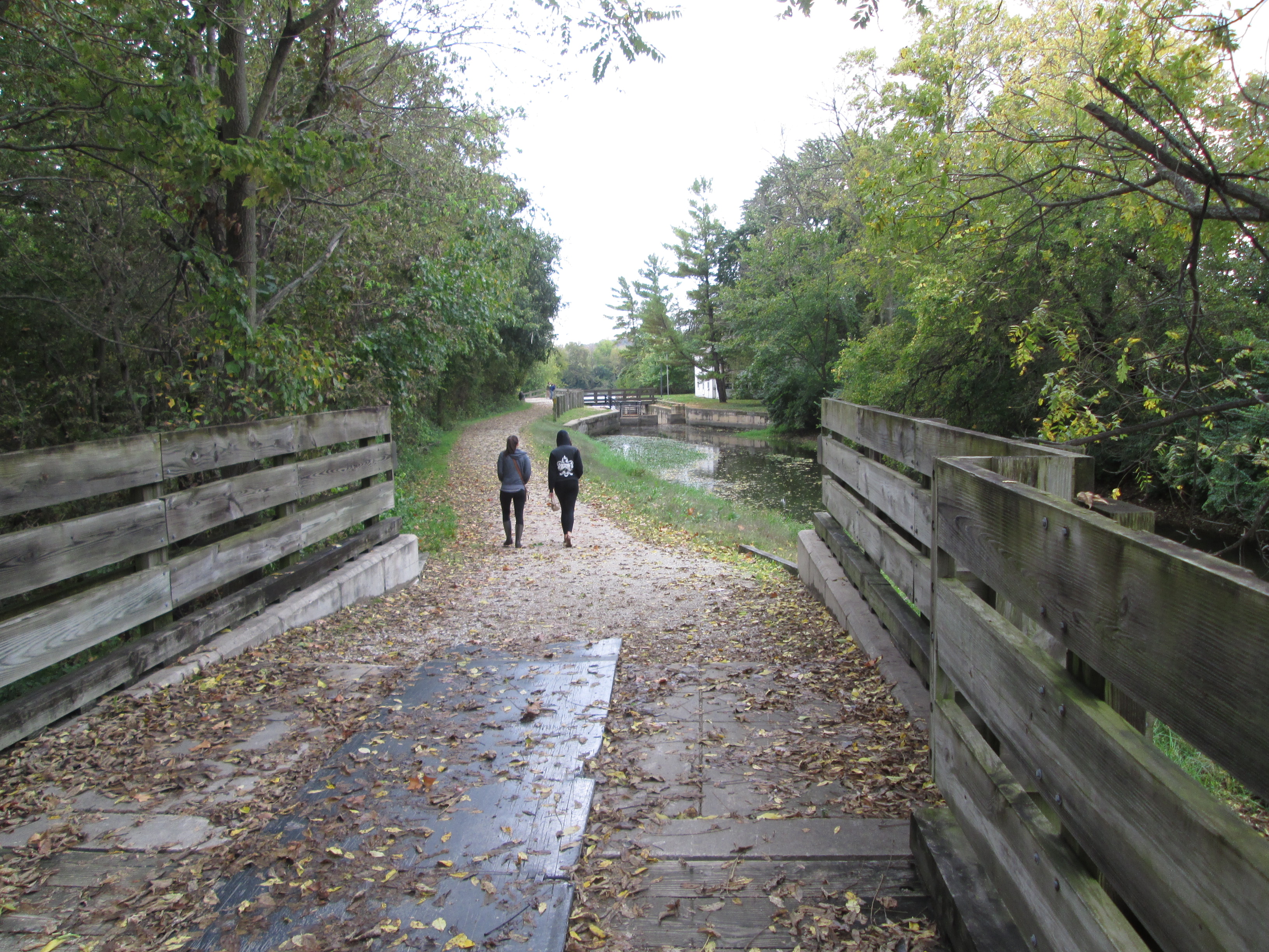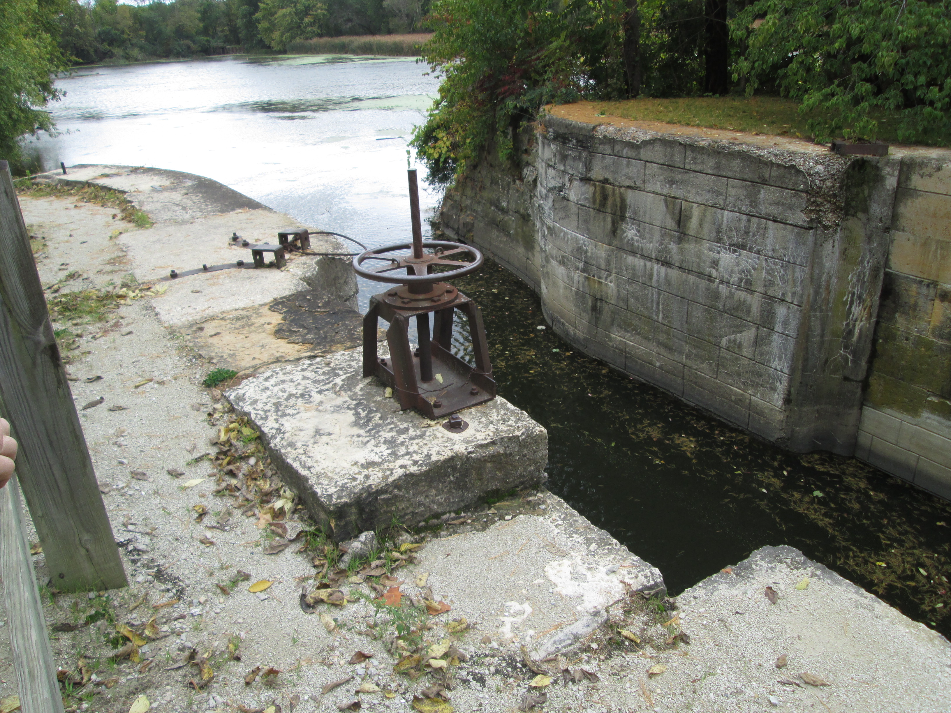 The Illinois and Michigan Canal was constructed from 1836 to 1848 and included 17 locks and four aqueducts along its 96-mile route connecting the Chicago and Illinois rivers. It was largely replaced by the Chicago Sanitary and Ship Canal, and was decommissioned in 1933.