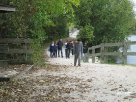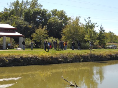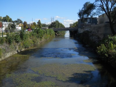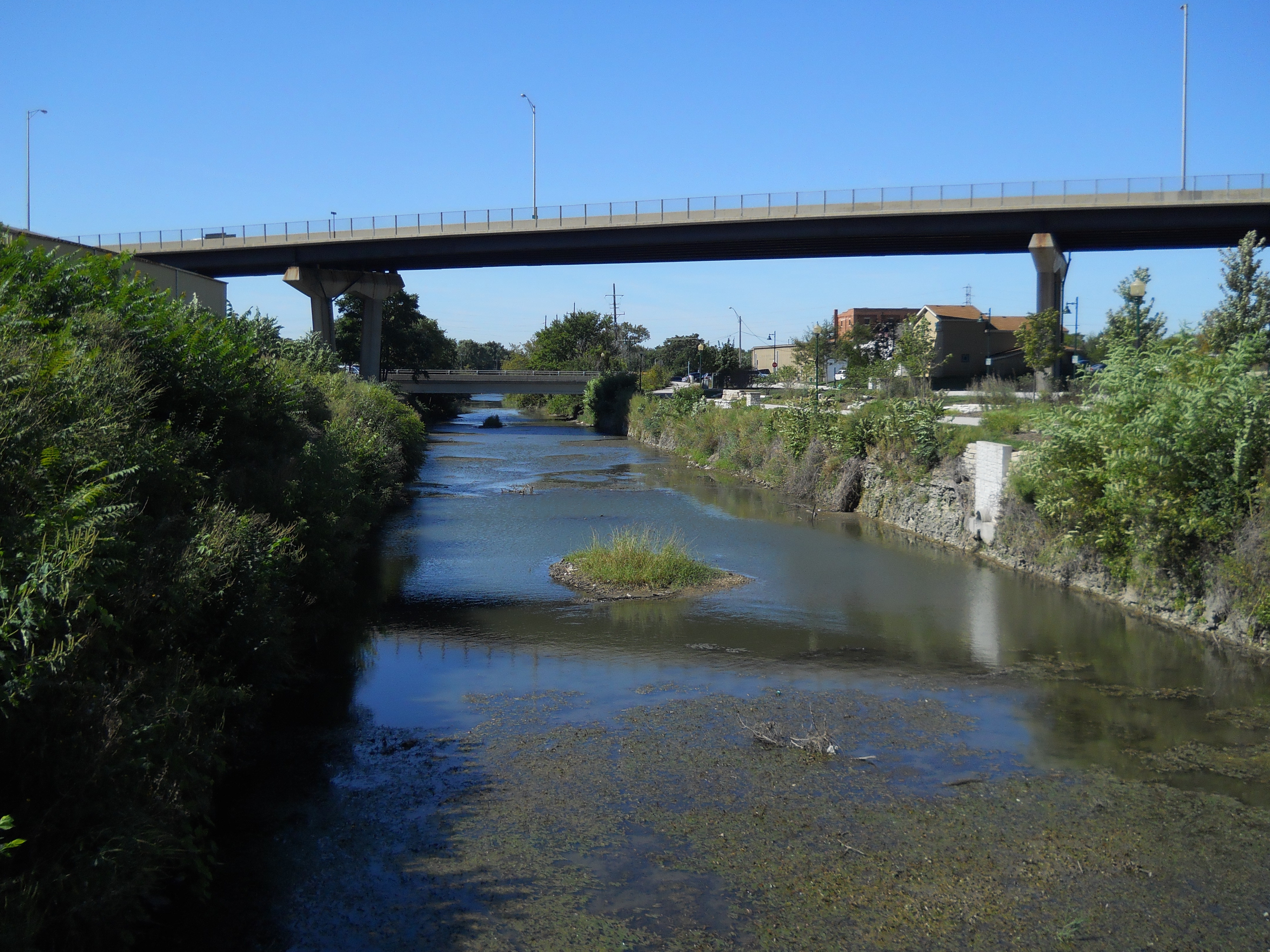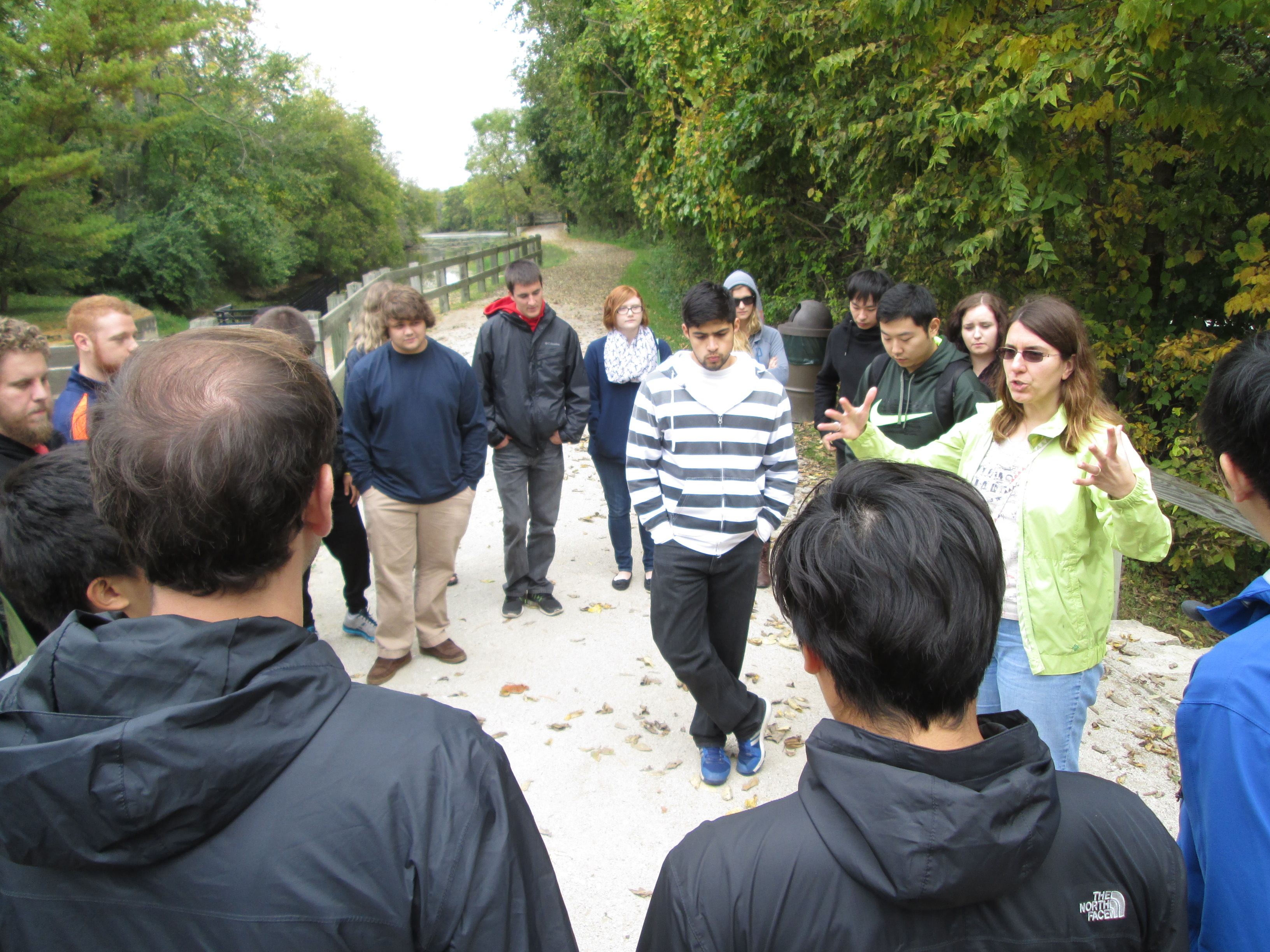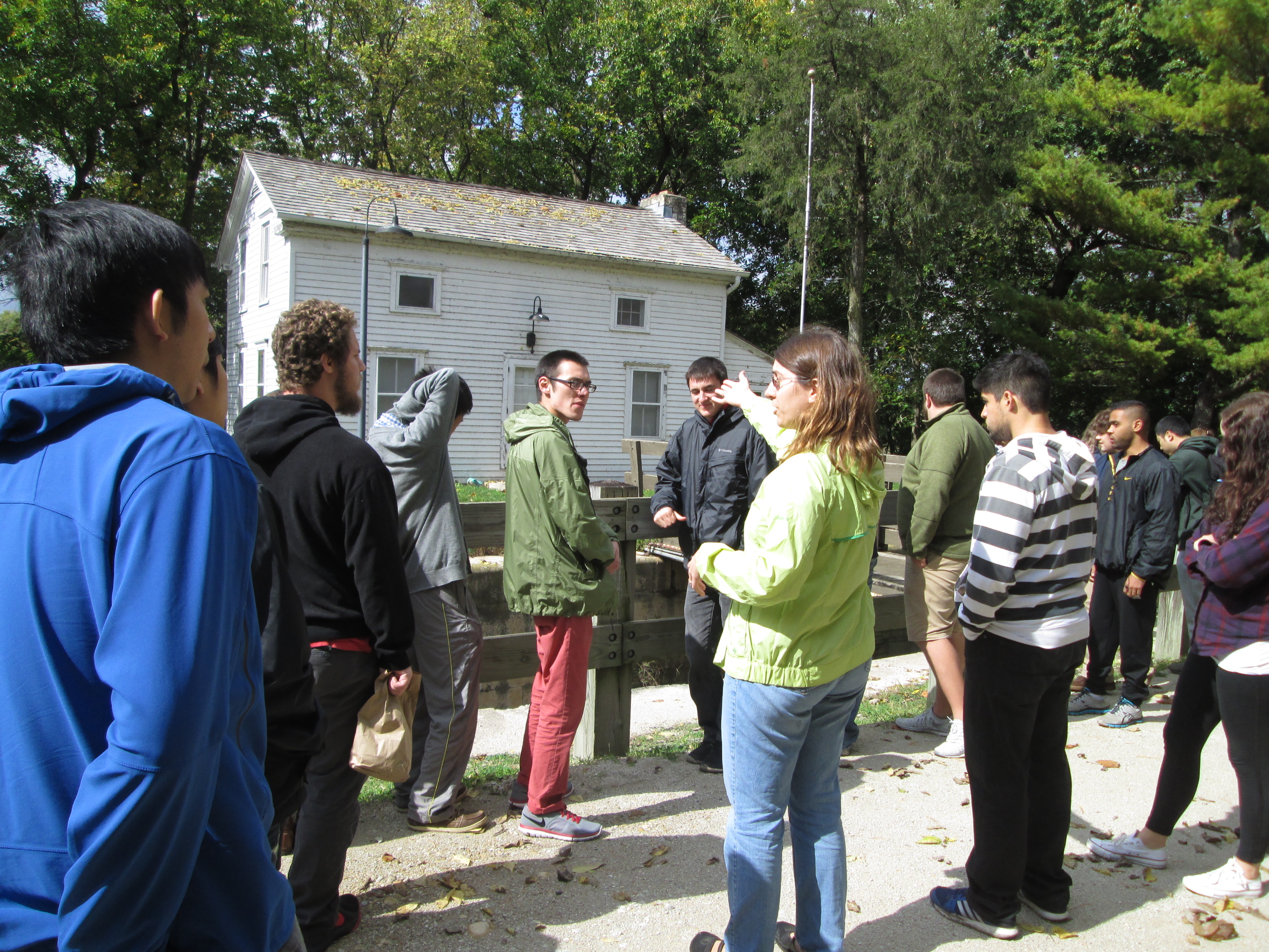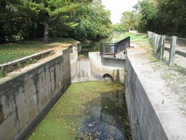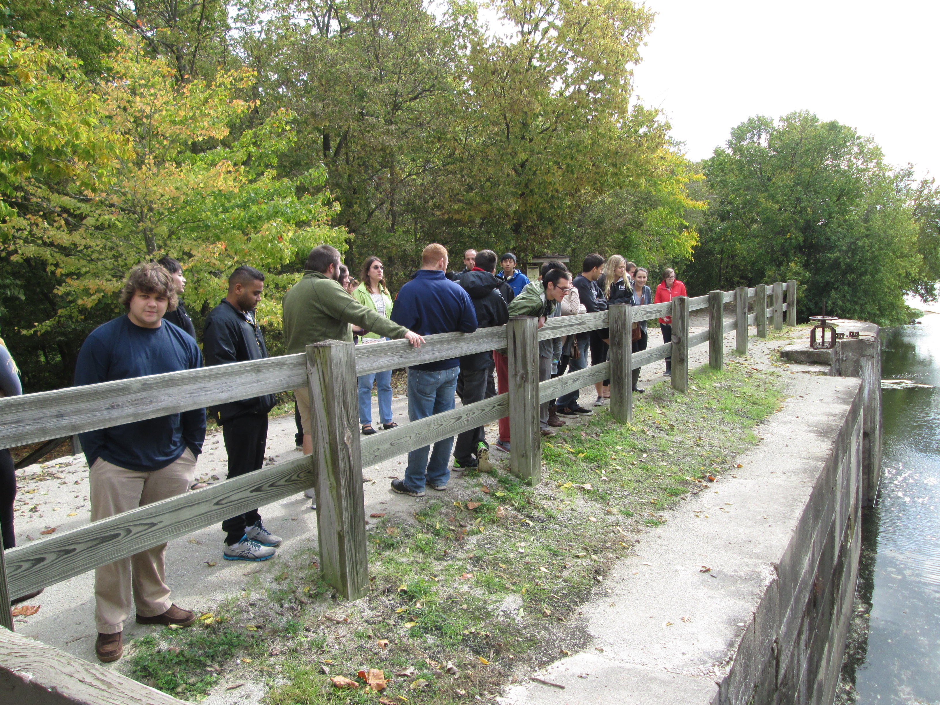 The Illinois and Michigan Canal was constructed from 1836 to 1848 and included 17 locks and four aqueducts along its 96-mile route connecting the Chicago and Illinois rivers. It was largely replaced by the Chicago Sanitary and Ship Canal, and was decommissioned in 1933.