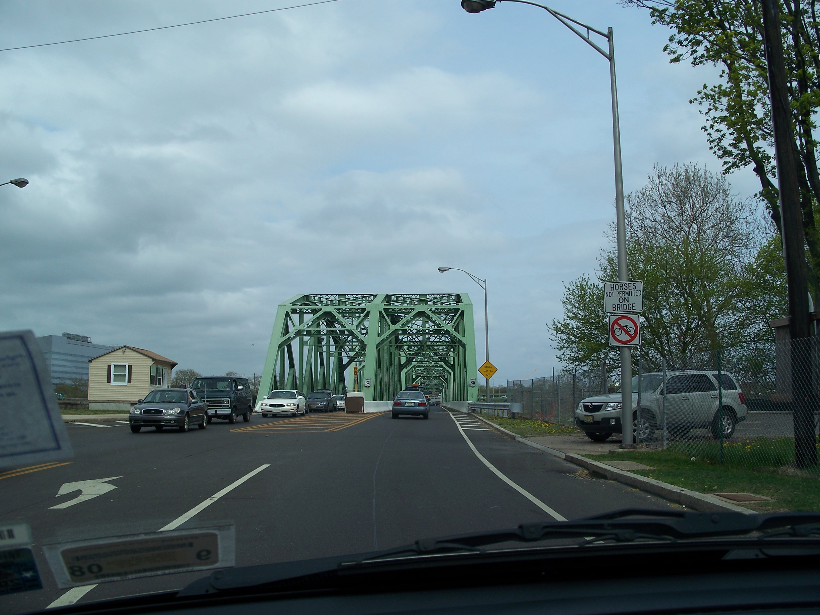 Ironically, this bridge was constructed by the "Joint Commission for the Elimination of Toll Bridges Across The Delaware River" reflecting an ethos of public works that is no longer embodied in the newer toll bridge to the east that has replaced this bridge as the main Highway 1 river crossing.
