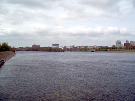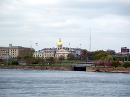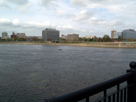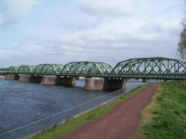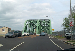 This four-lane, five-span camelback truss bridge carries Highway 1 over the Delaware River, connecting Trenton, NJ and Morrisville, PA. Also known as the "Lower Free Bridge", it was designed by Lousi Focht. The bridge is perhaps most notable for large letters on the eastern side stating, Trenton Makes, The World Takes, which is readily visibile from the main Highway 1 toll bridge and from Amtrak and SEPTA trains traveling to Philadelphia on the Northeast corridor line and harkens back to a time when Trenton was a major manufacturing city.