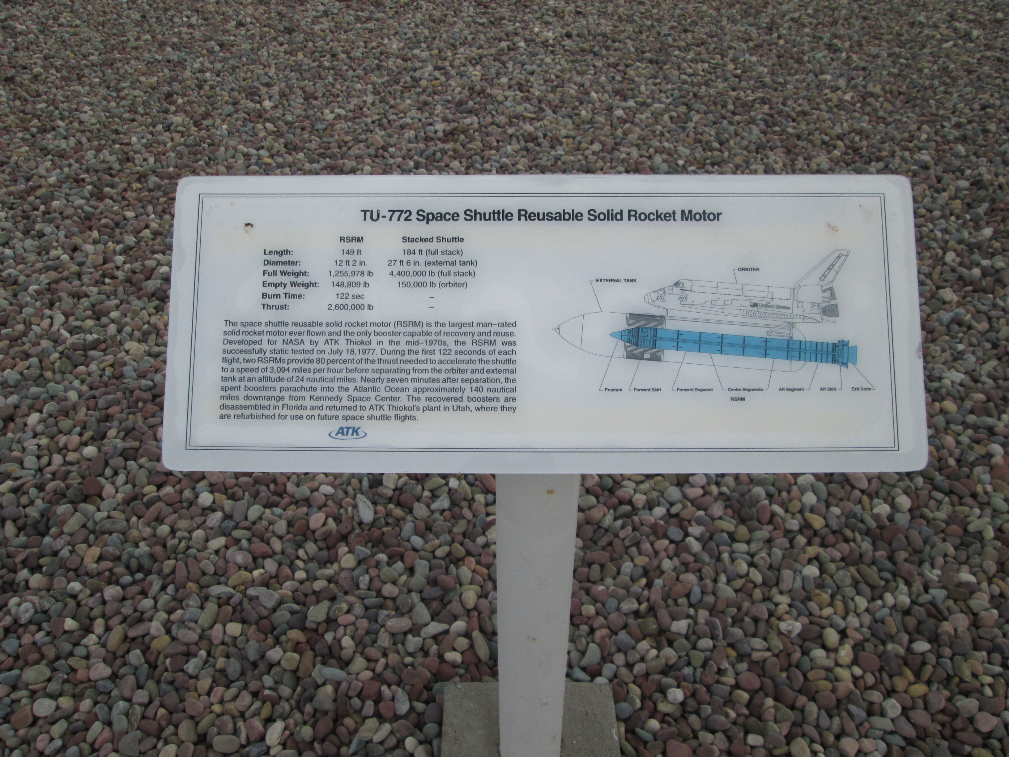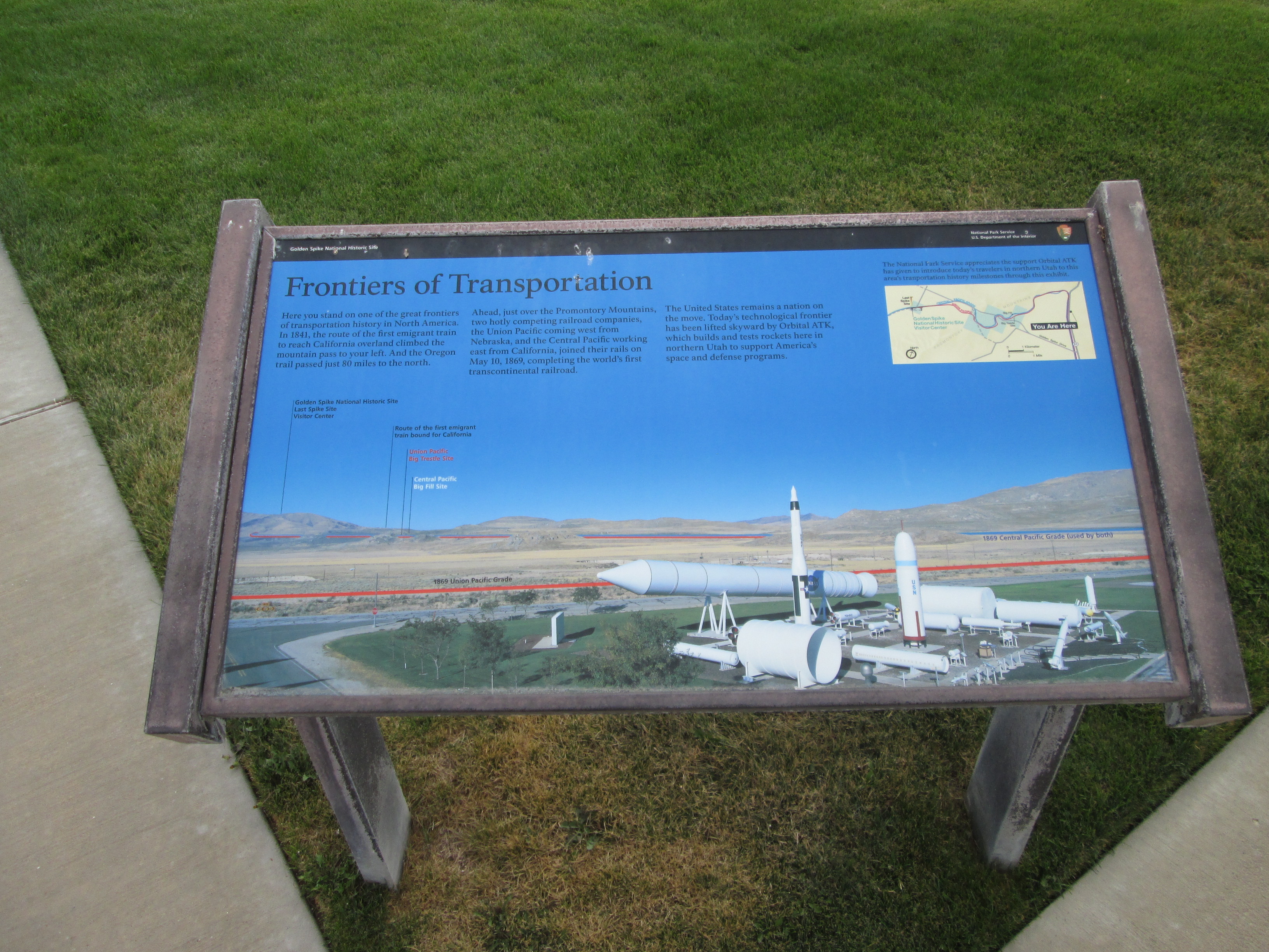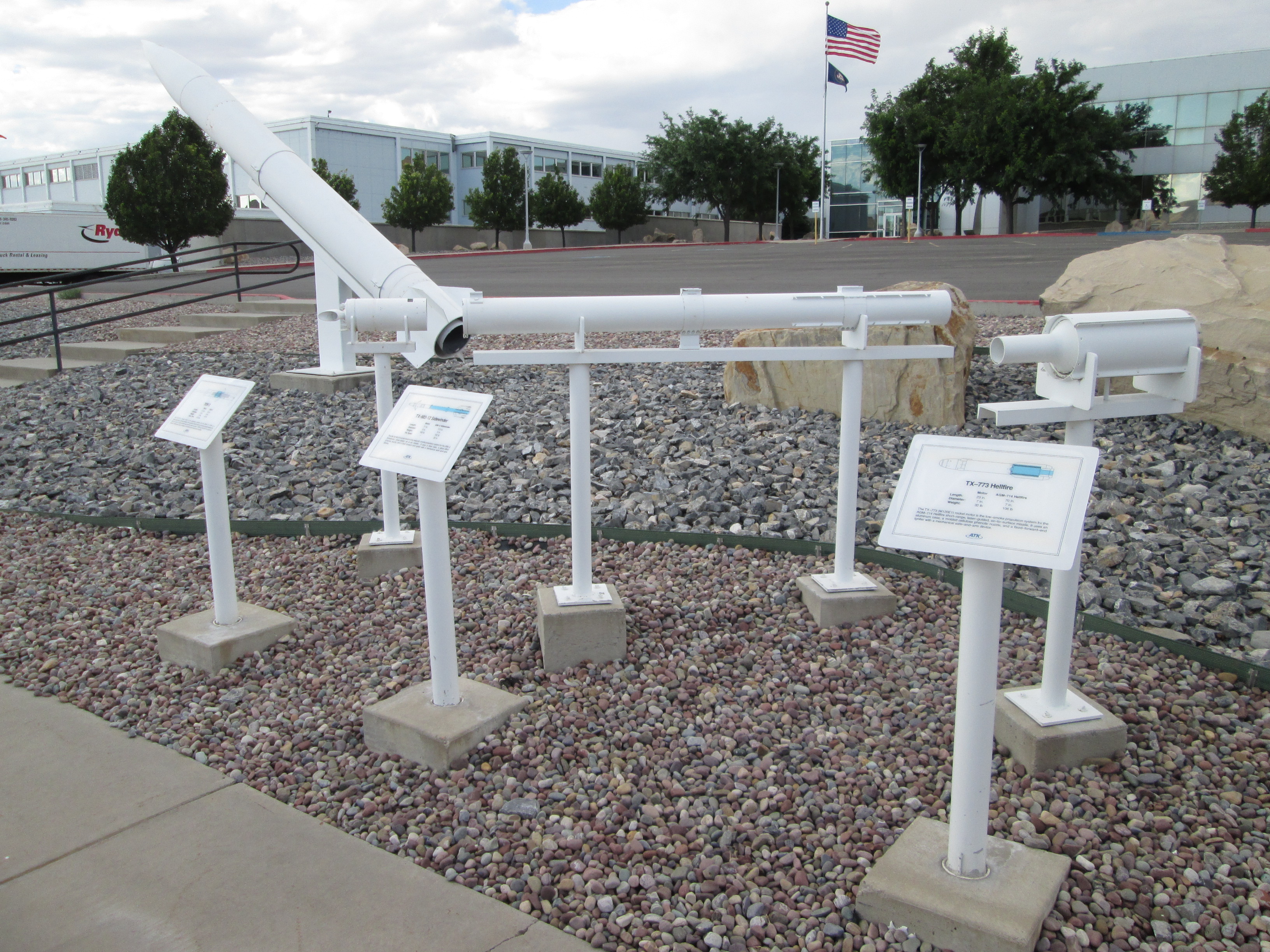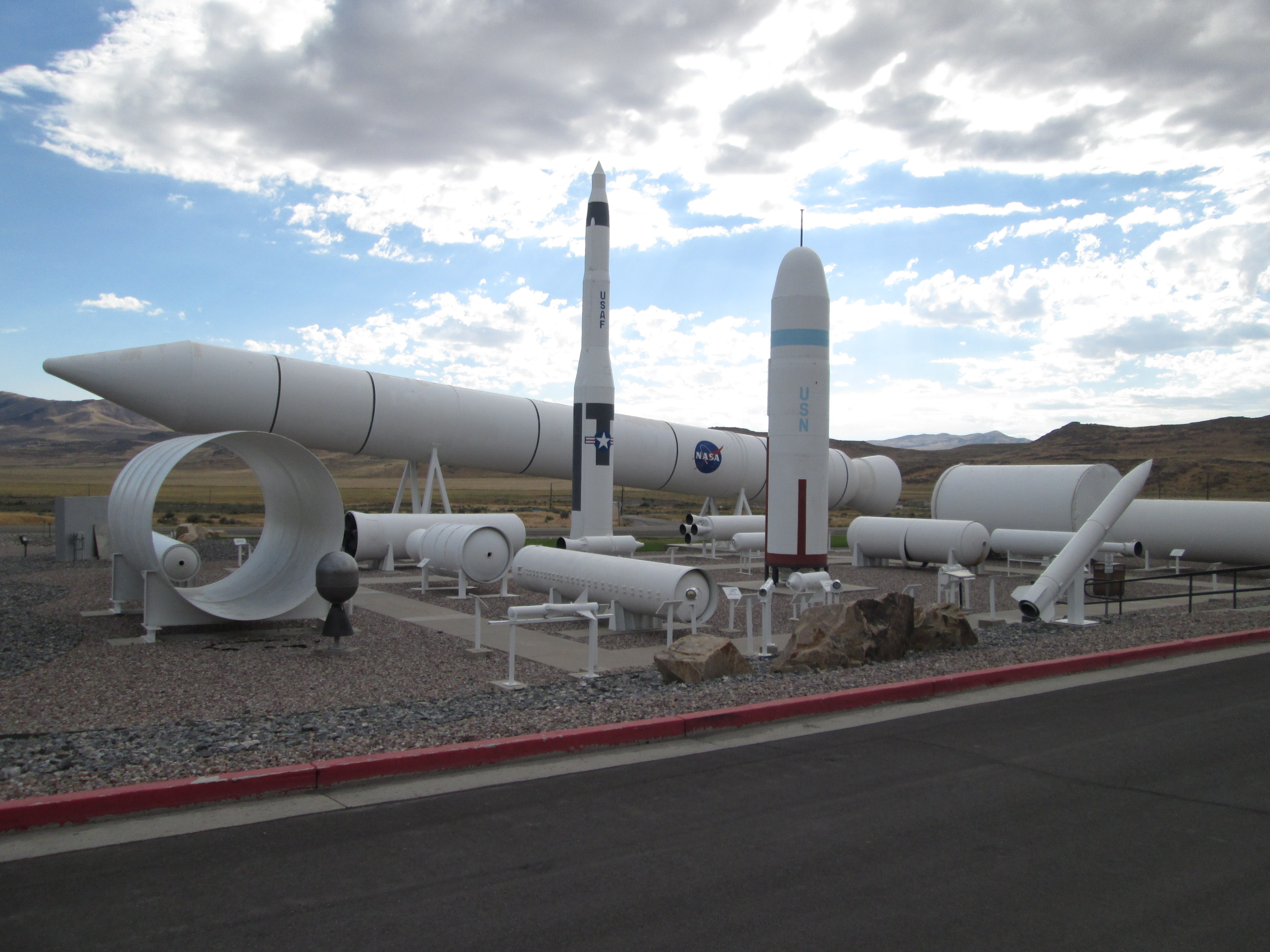 Display of a variety of solid rockets produced by Orbital ATK and their predecessor companies, including Morton-Thiokol. It became Northrup Grumman Innovation Systems in 2018. Serendipidously proximate to the Golden Spike National Historic Site