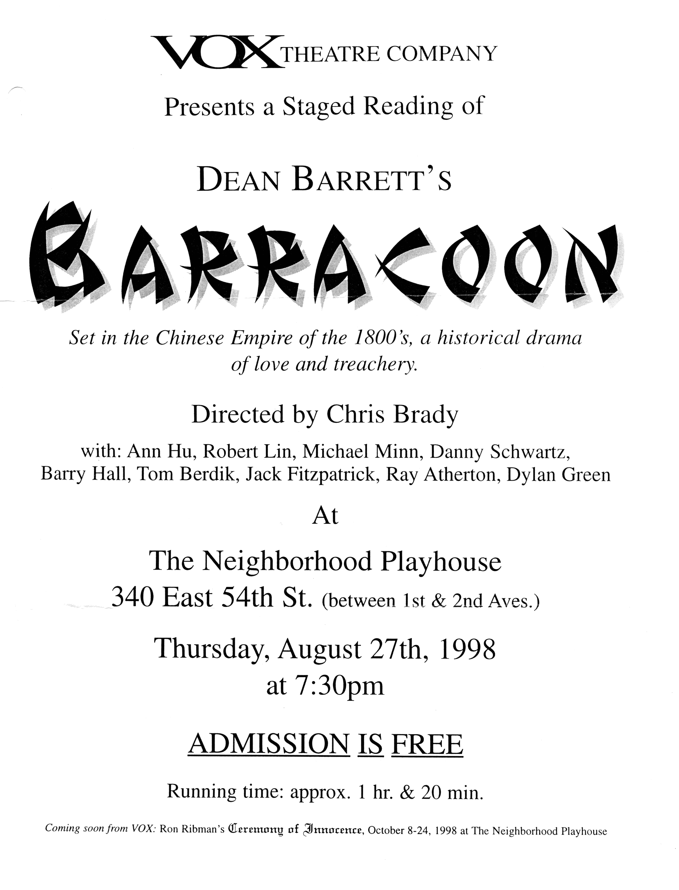 Producer: Vox Theatre Company