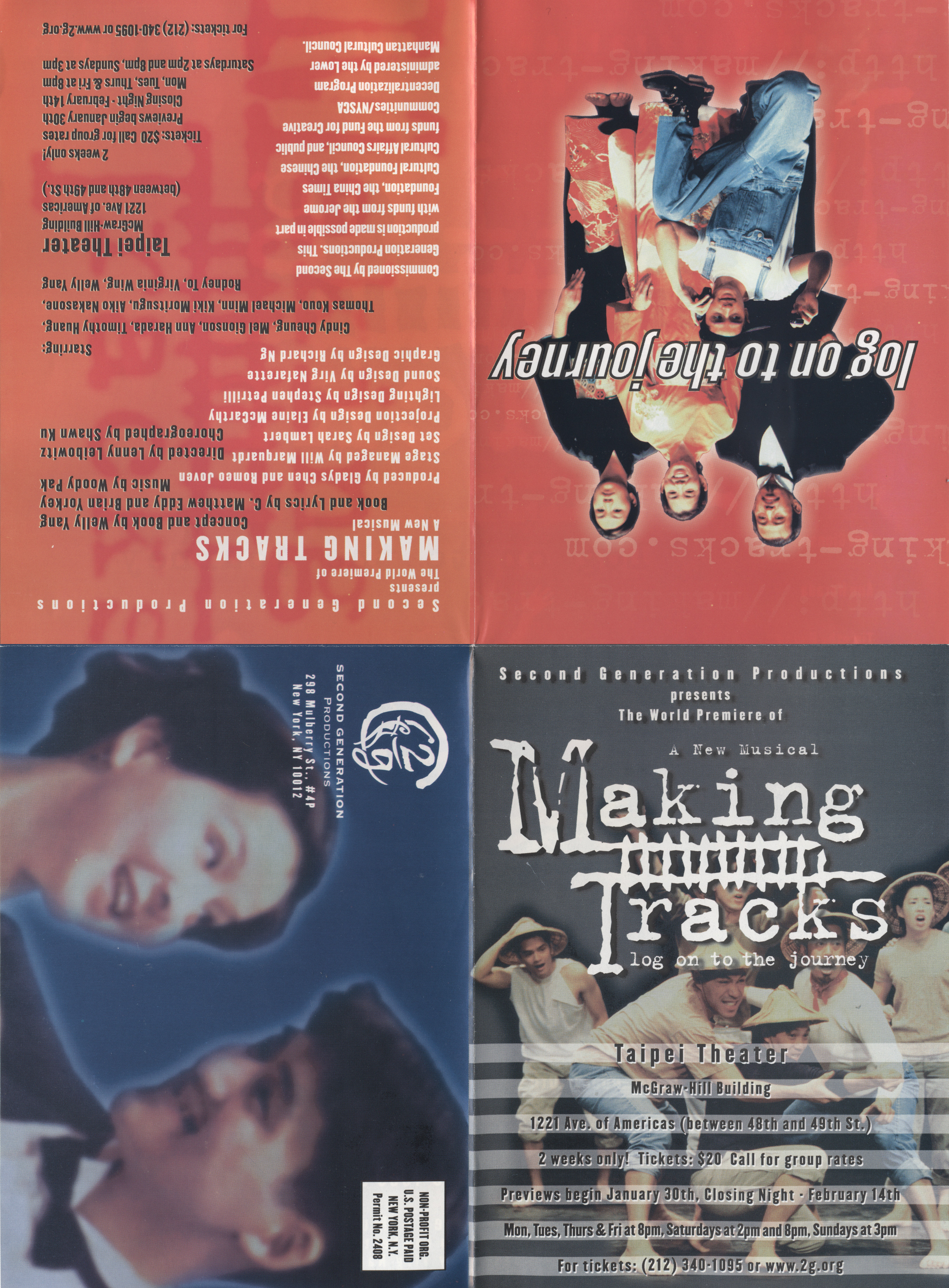 01/30/1999 Mailer front01/30/1999 Mailer back01/30/1999 Taipei Theatre Program03/27/1999 Columbia University program04/23/1999 University of Pennsylvania program01/30/1999 Making Tracks01/30/1999 Michael Minn and Rodney To04/23/1999 University of Pennsylvania