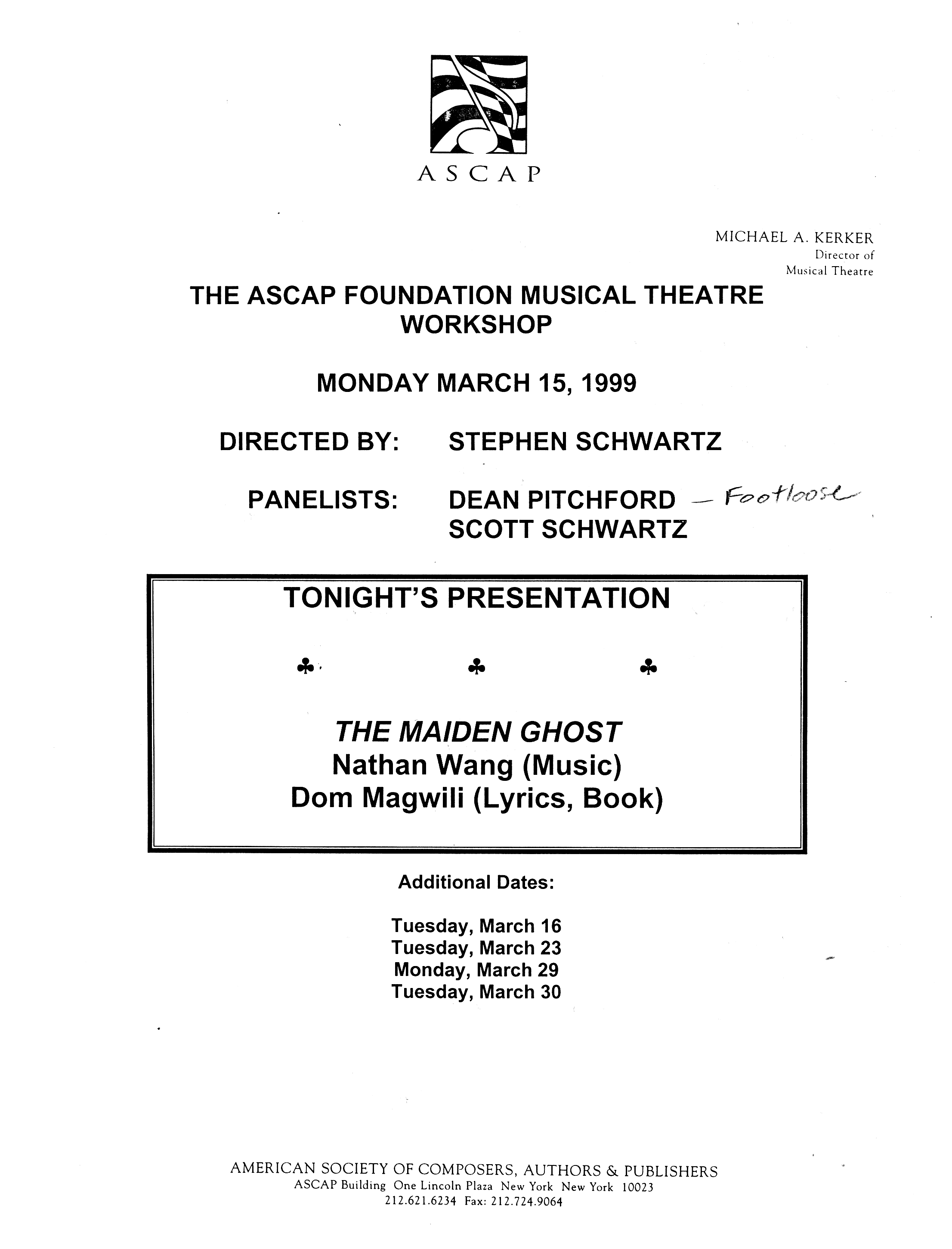 Producer: The ASCAP Foundation Musical Theatre Workshop