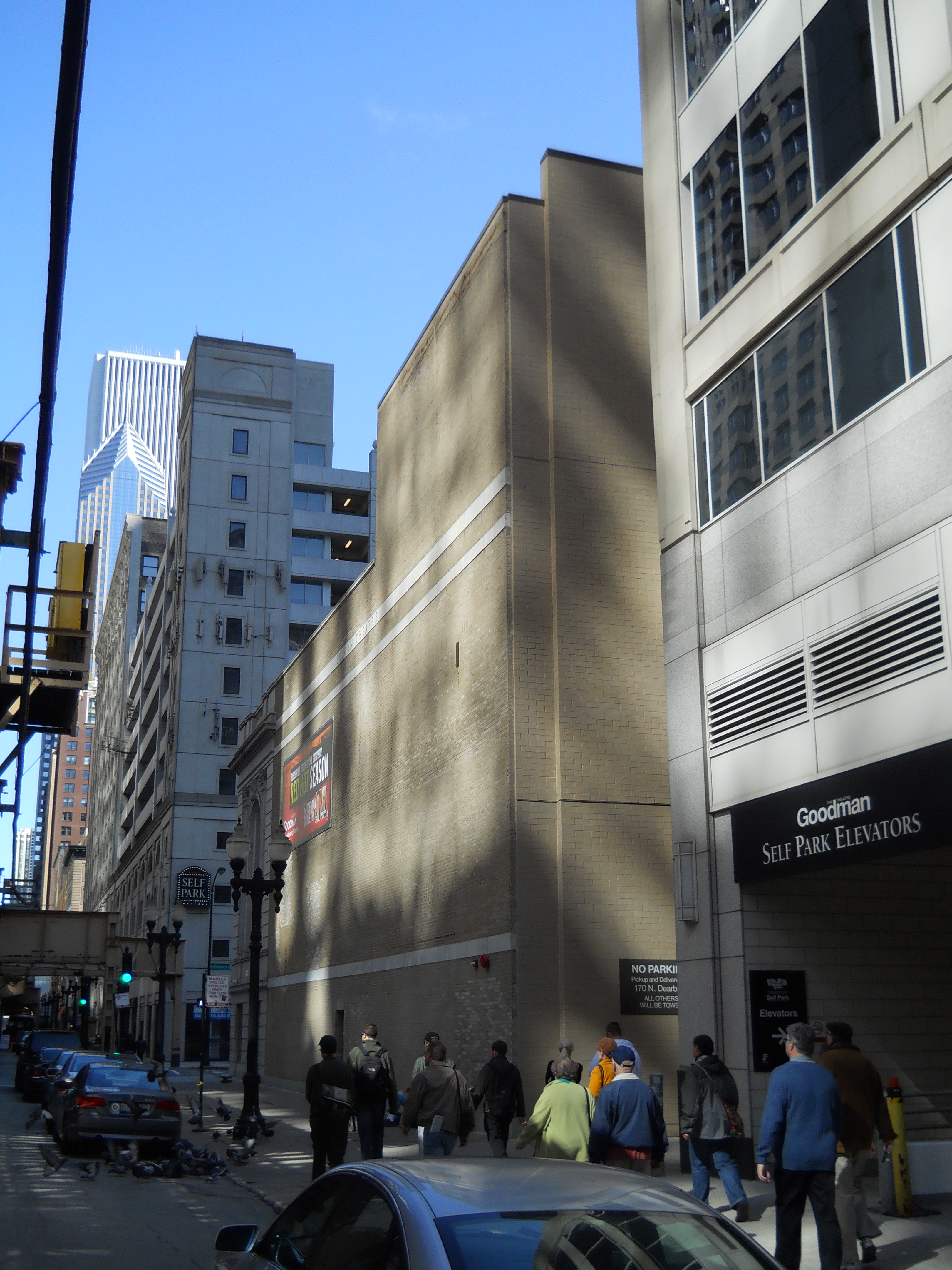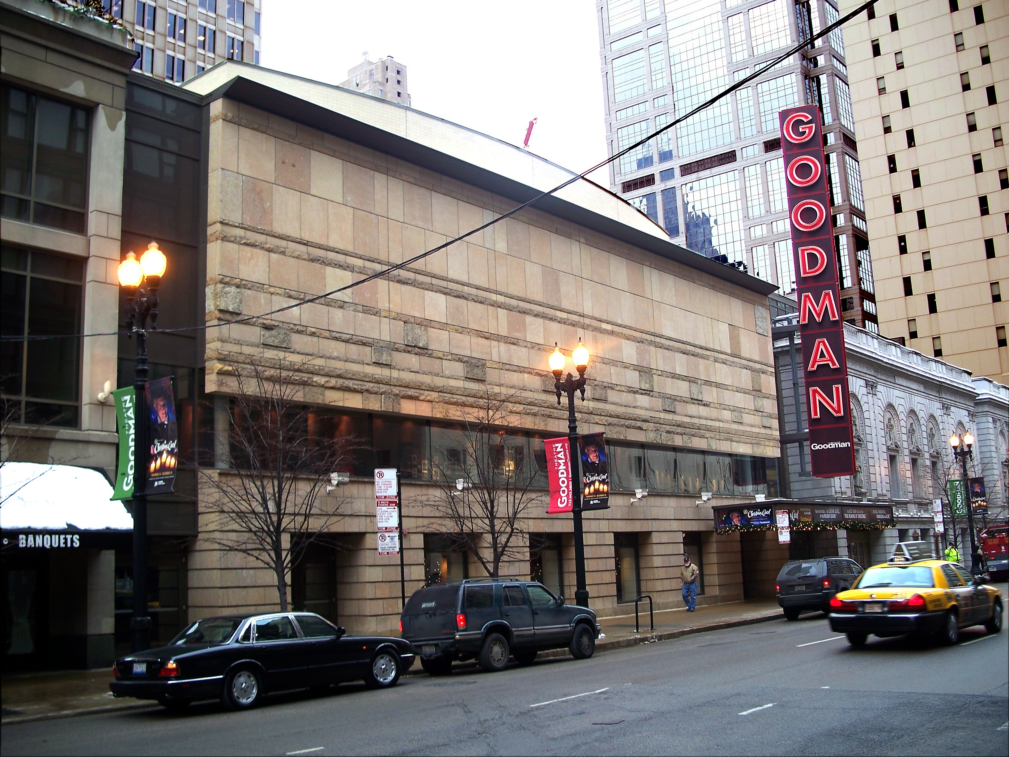 In the late 1980s, the theatre was outgrowing its aging space and began looking for options to either rebuild or relocate. This facility was built in the 1990s on the site of two shuttered and decaying commercial theaters, the Selwyn and the Harris. The new Goodman opened in December of 2000 with a production of August Wilson's King Hedley II. The facility houses two theatres, the 856-seat Albert Theatre and the flexible-configuration 468-seat Owen Theatre.
