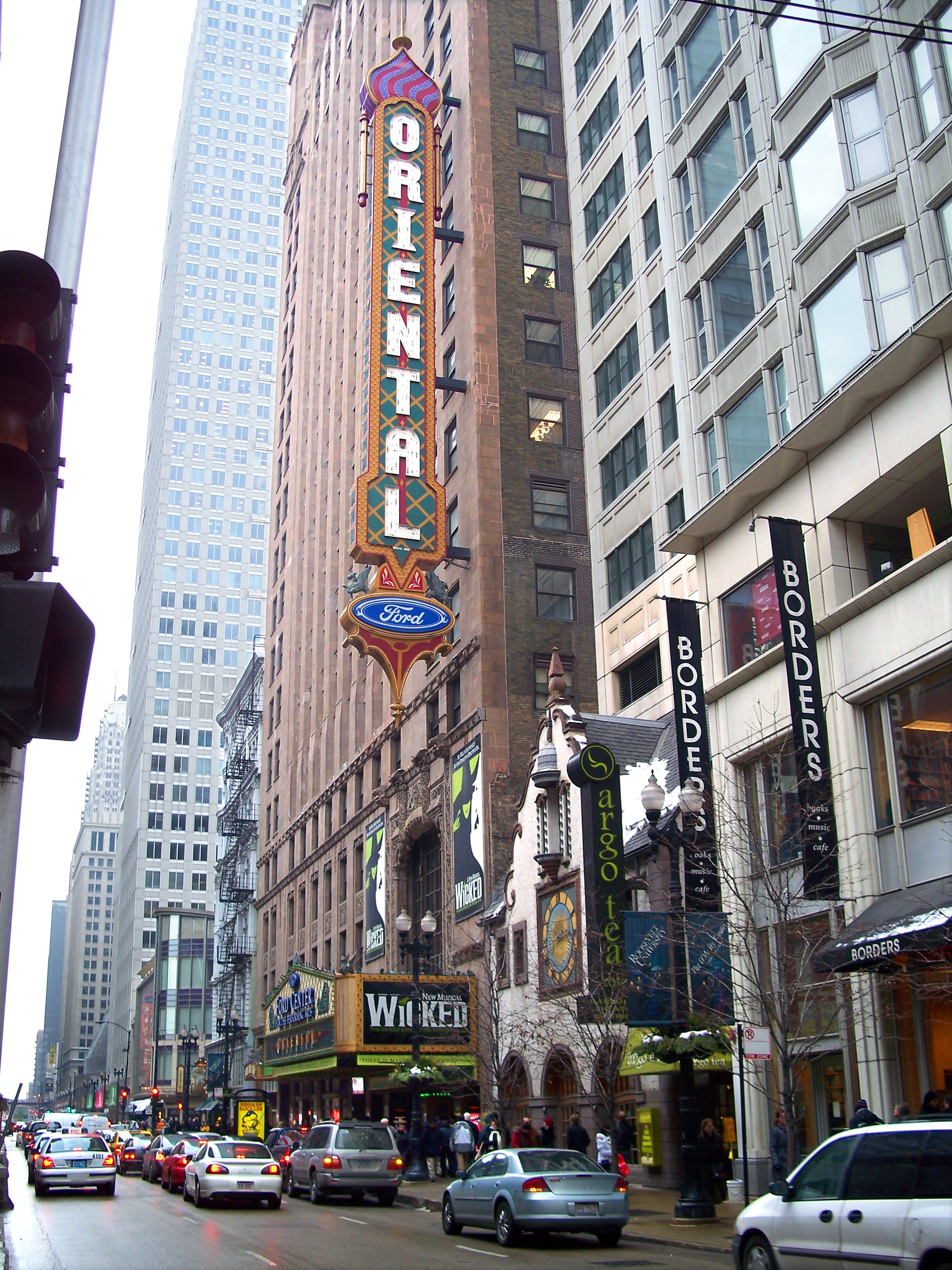This silent film palace was designed by Chicago architects Cornelius W. and George L. Rapp. The interior featured a lavish decor inspired by Eastern art and architecture. It served faithfully for 55 years until the failing fortunes of downtown Chicago and large film houses in general forced its closing in 1981. After a 15-year period of dormancy and a threat of demolition, the facility was restored as a live theatrical venue in a joint project by Livent Inc. and the City, with a reopening on October 18, 1998. (reference)