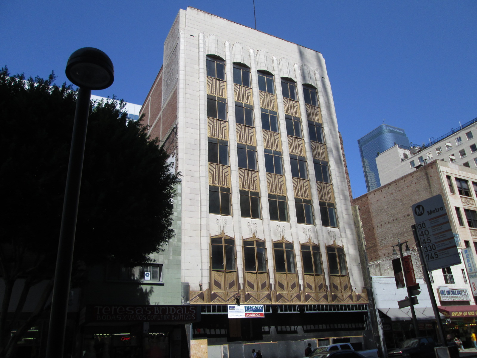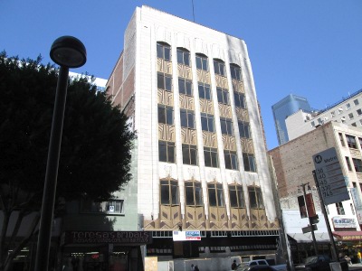 Across the street is the Hartfields Building (537 S. Broadway), a 6-story reinforced concrete and brick structure in Art Deco styling that was built in 1931.