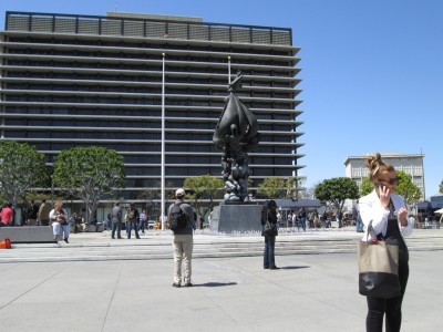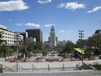 Looking down Grand Park at City Hall