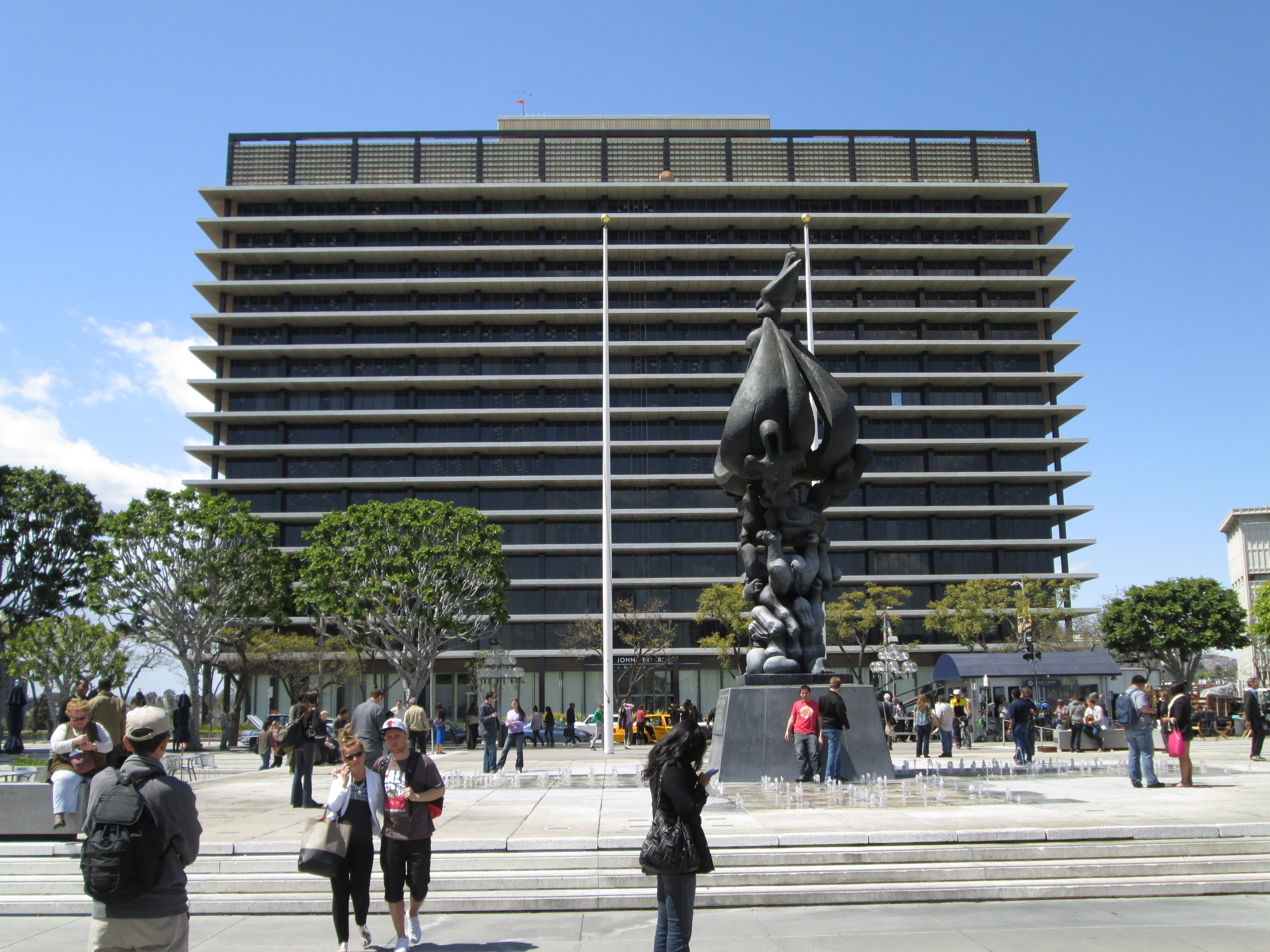 Jane Jacobs (1916-2006) was a fervent critic of New York's Lincoln Center, which emerged at the same time and from the same philosophy as the Los Angeles Music Center. Jacobs (1961, 167-168) asserted in her book The Death and Life of Great American Cities that public buildings are "chessmen" that need to be employed in concert with other types of buildings to create vibrant neighborhoods. The urban planning mistake of post-WW-II modernism was to see them like factories, which needed to be segregated into districts for the betterment of the community. Business districts need entertainment venues to give the communities life after business hours. Likewise, entertainment venues need commercial buildings to keep them active (and safe) during the day.