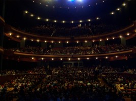 Design of the Great Hall was inspired by the great European opera houses and features three levels that include opera boxes and a curved mezzanine. My primary memories of our visit were lighting equipment problems caused by a lightning strike earlier in the week and by the ubiquity of small beetles that had been introduced in previous years as natural predators to protect the area's corn plants. (4/4/2006)