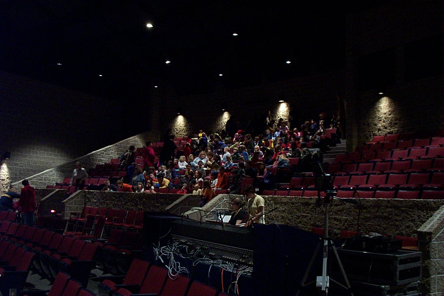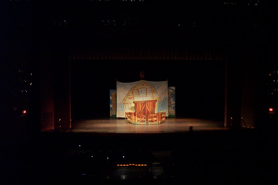 This space is attached to a high school, but is used as a municipal auditorium. I was there with Charlotte's Web and one of the elderly ushers showed us a little tableau he had carved out of wood. Saying that his grandkids didn't appreciate his artistic efforts, he graciously offered it to us, but we had to, sadly, decline since it would have met an igonominious fate with the rigors of touring.