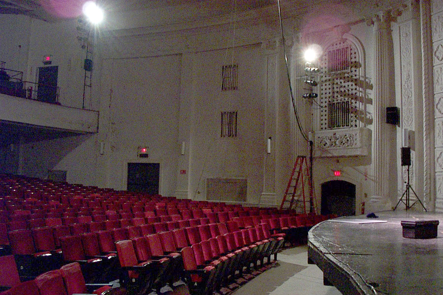I was there in 2002 and my strongest recollection is how plain the interior was. The sparse ornamentation seemed to have been painted over in white - perhaps for lack of funds to do a serious restoration. I also had issues with the house people who, due to fire codes, would not allow me to set up my audio equipment in an aisle and forced me deep into one of the exit alcoves - which was almost as bad as trying to mix from backstage.