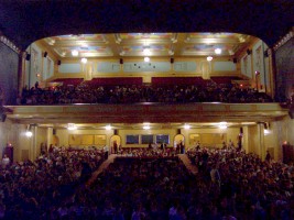 The Romanesque Opera House was built in 1894 for $39,000 by local philanthropist William Smith. In 1929 it was purchased by Schine's Amusement Company and underwent an $500,000 interior reconstruction as a movie palace combining Art Deco and Baroque elements overseen by architect Victor Rigaumount. The house underwent a slow decline culminating in a 1978 seisure by the city for back taxes. The Finger Lakes Regional Arts Council was formed in 1979 to preserve the theatre and incremental renovations have been continuing through the present. The facility was renamed the Smith Opera House in 1983. (4/25/2006)