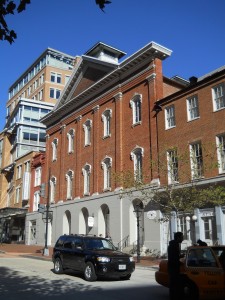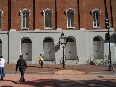 This building was originally built in 1833 as the second meeting house for the First Baptist Church. It was leased by John T. Ford and reopened as a theatre. At an April 14, 1865 performance of Tom Taylor's Our American Cousin, President Abraham Lincoln was assassinated by John Wilkes Booth. The theatre was subsequently closed and bought by the government for use as offices and storage. Funds were appropriated in 1955 for an engineering study into reconstruction of the building. Funds were appropriated for reconstruction in 1964 and the theatre reopened for performance on January 30, 1968. When I visited in 2011 it served both as a historic site and performance venue.