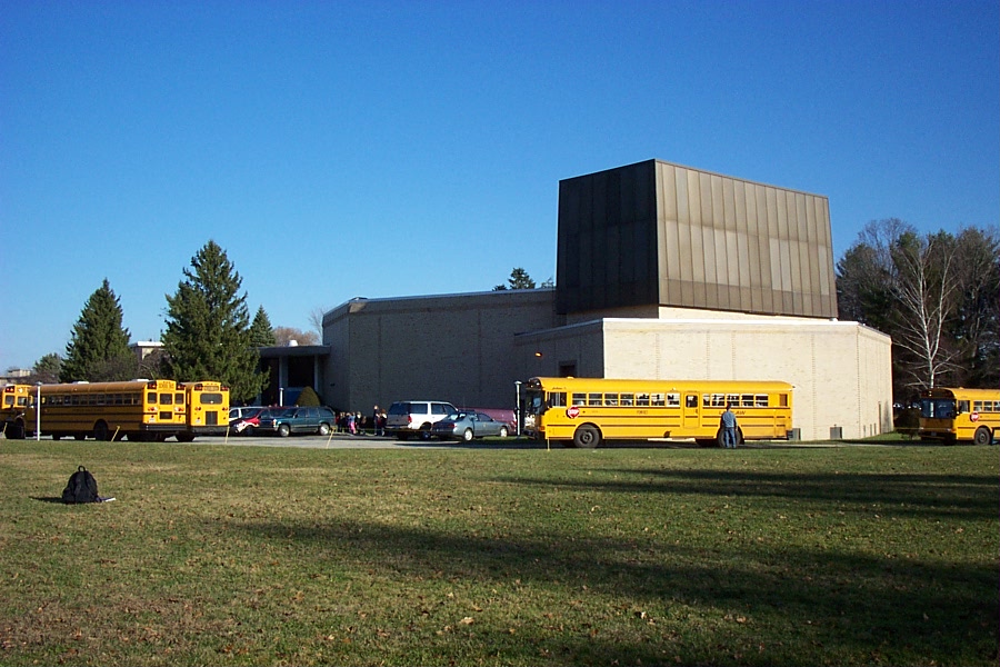 This was the auditorium on the campus of the former Amherst College. In 1996 the campus had been incorporated into the Hyde School, which was a boarding school for troubled students that stressed values (truth, honesty, integrity, courage, and accountability) over academic performance. When we visited in 2001, the facility was the Hyde Cultural Center.