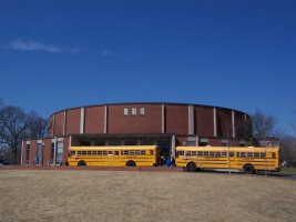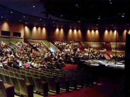 Notable for a mainstage with a 3/4 thrust in a semicircular seating configuration.