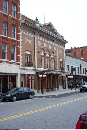 The Playhouse Theatre was built by George T. Chaffee with an exterior in classical style and an interior typical of a Victorian opera house. The house transitioned primarily to motion pictures in 1931 and was renamed the Paramount Theatre. Facing dwindling audiences, the theatre closed in 1975 and sat dormant until 1985 when Center on the Alley, Inc. was formed to purchase the theatre for use as a performing arts center. The adjoining Richardson Block building was purchased in 1995 and the architectural firm of Nimtz - Berryhill - Figiel developed the plan to unite the two buildings to supply modern amenities. Restoration was completed in early 2000 and the theatre reopened in March 2000. (12/08/2001)
