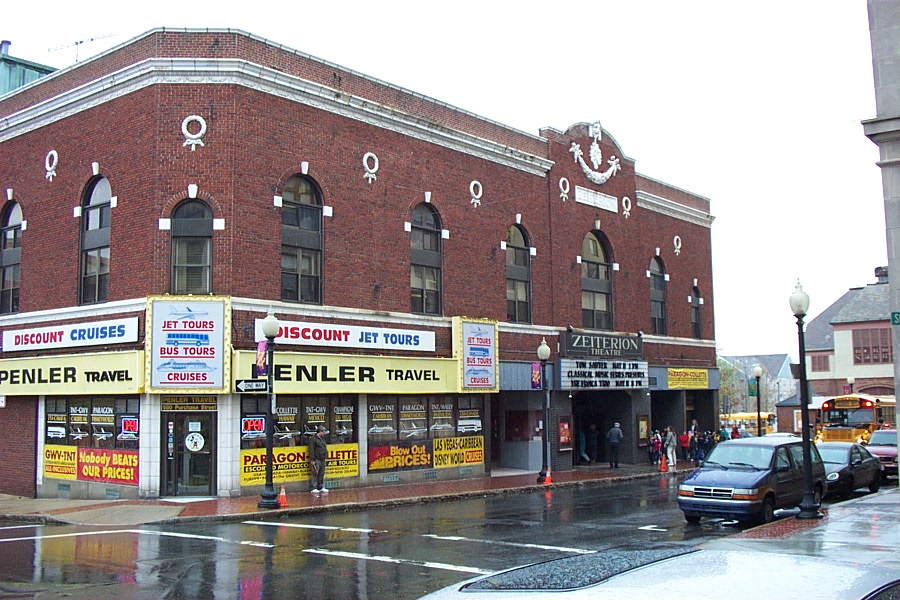 The Zeiterion was the last new theatre built in a downtown area that once contained 17 theatres. The theatre was originally built for vaudeville but closed soon after after opening and reopened for movies as the State Theatre. The theatre was "modernized" in 1971 but soon closed as the downtown area ceased to be a desirable entertainment destination. The Penler Brothers of Paragon Travel donated the theatre to the Waterfront Historic Area League and the restored theatre reopened as the Zeiterion on September 25, 1982.