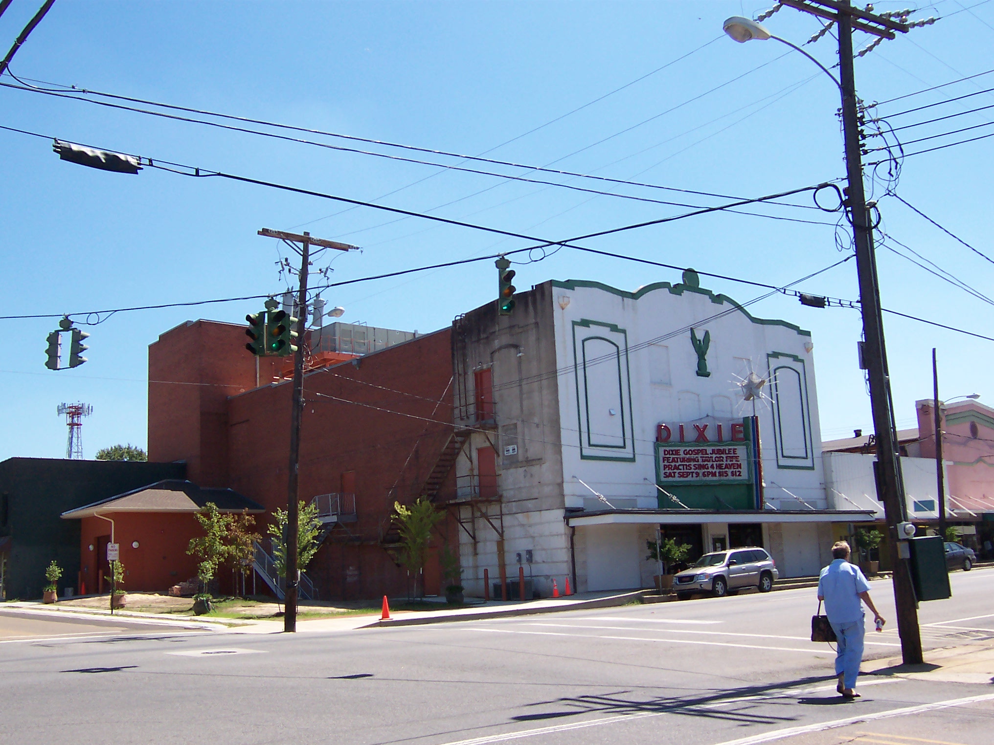 The New Astor was built for $100,000 as a vaudeville and movie house. After closing for a time in 1930, it reopened in 1932 as the Rialto Theatre. The theatre was extensively damaged by a ventilation system fire in January 1933 but was repaired and reopened relatively quickly. The theatre was renamed the Dixie Theatre sometime in the 1930s. The Dixie ceased regular film screenings in 1976 and was used primarily as a live music venue until the mid 1990s. Plans for turning the theatre into a performing arts center began forming in 1996, leading to state funding in 1999 and a long series of renovations that completed around the time I took these photos in September, 2006.