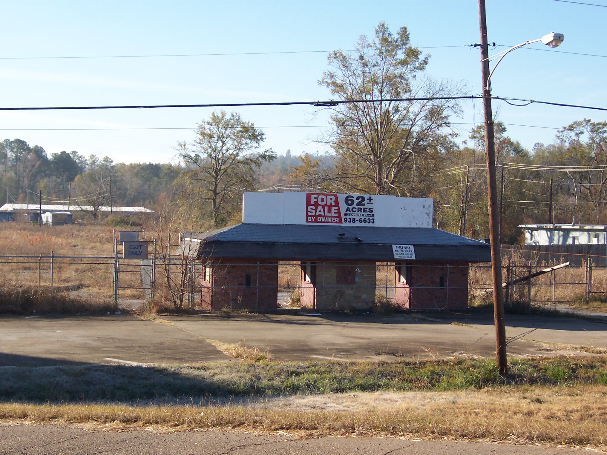 Located on the southwest corner of this small Southern town just off I-20. One of numerous closed drive-in theatres that dot the undeveloped parts of American suburbia. Part of the land seems to have been converted to a racing facility of some kind.