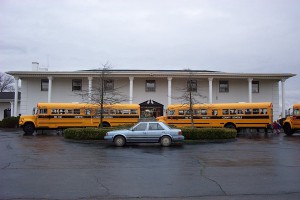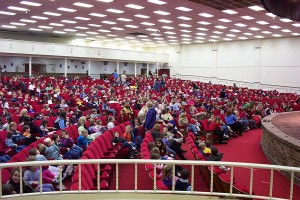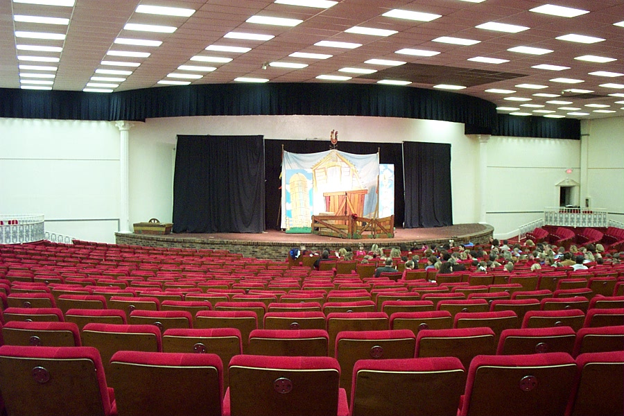 The Thoroughbred Center is a training facility for thoroughbreds that includes a show stage for horses that doubles as a theatre. The surface of the "stage" is a rubberized material that is good for horses hooves but a bit precarious for live theatre. (2/20/2002)