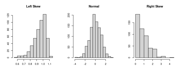 Skew is the direction that the distribution is shifted away from normal. The direction left or right is determined by the side that has the longer tail.
