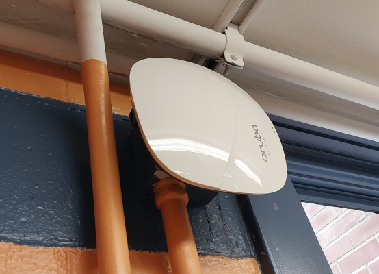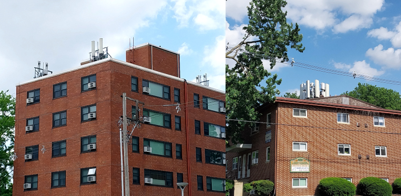 Mobile devices can connect to the internet through radio connections to cellular network antennas mounted on towers and buildings.
