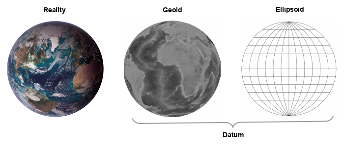 - A geodetic datum is a coordinate system and set of reference points drawn across the ellipsoid. A datum always specifies both a geoid and an associated ellipsoid.
