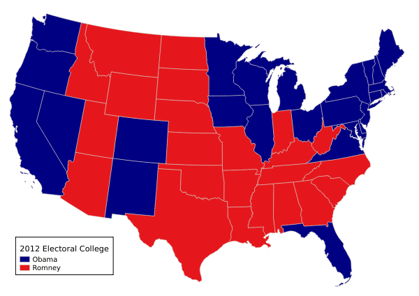 A common type of choropleth seen during US presidential election years is the red-state / blue-state map, where red states are won by a Republican and blue states are won by a Democrat: