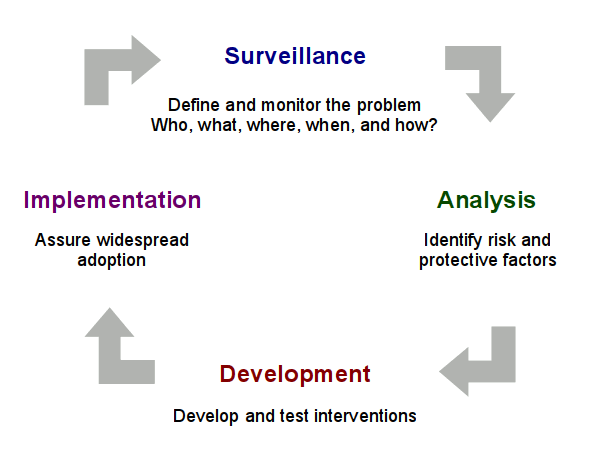 In public health, the formation of policy goes through four steps, commonly referred to as the public health approach (CDC 2019b):