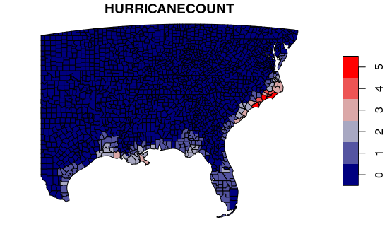 head(st_drop_geometry(alabama[,c("Name", "HURRICANECOUNT", "WINDMILES")]))