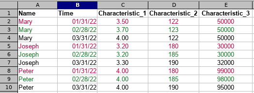 Panel data is often used in the social science in longitudinal studies that record characteristics of multiple individuals over multiple time periods.