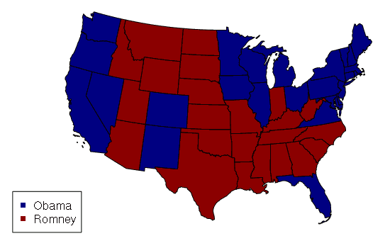 legend('bottomleft', legend=c('Obama', 'Romney'), pch=15, col=c('navy', 'darkred'))