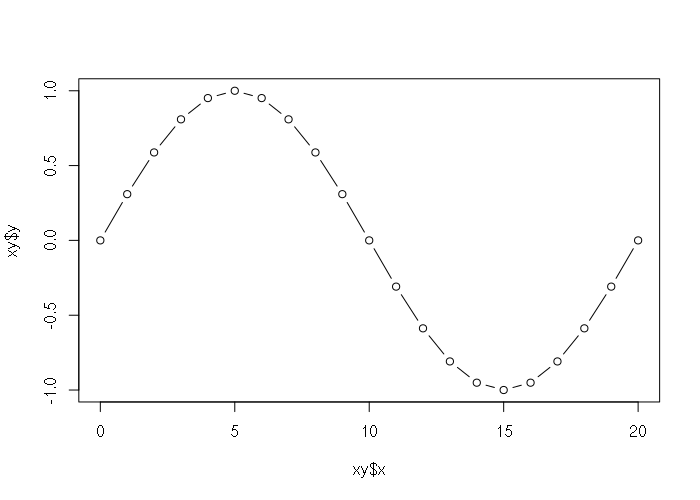 Numeric vectors can be visualized as line graphs with the plot() function: