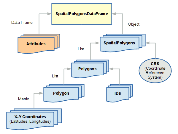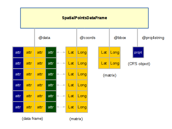 Spatial objects tend to be complex, and except for trivial cases, they are generally imported and exported to and from files rather than directly generated in R code.